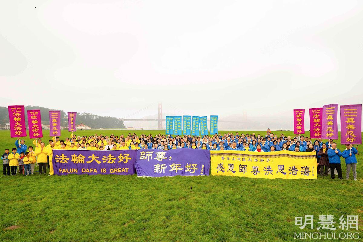 ![]() 图1:旧金山湾区学员双手合十说:“谢谢师父!祝师父新年快乐!” |