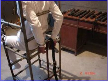 ![]() 酷刑演示:双手反背铐在铁椅子上 |