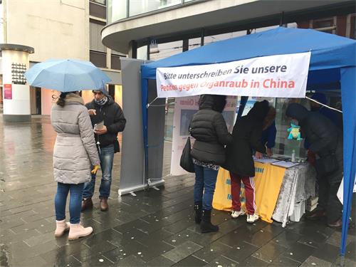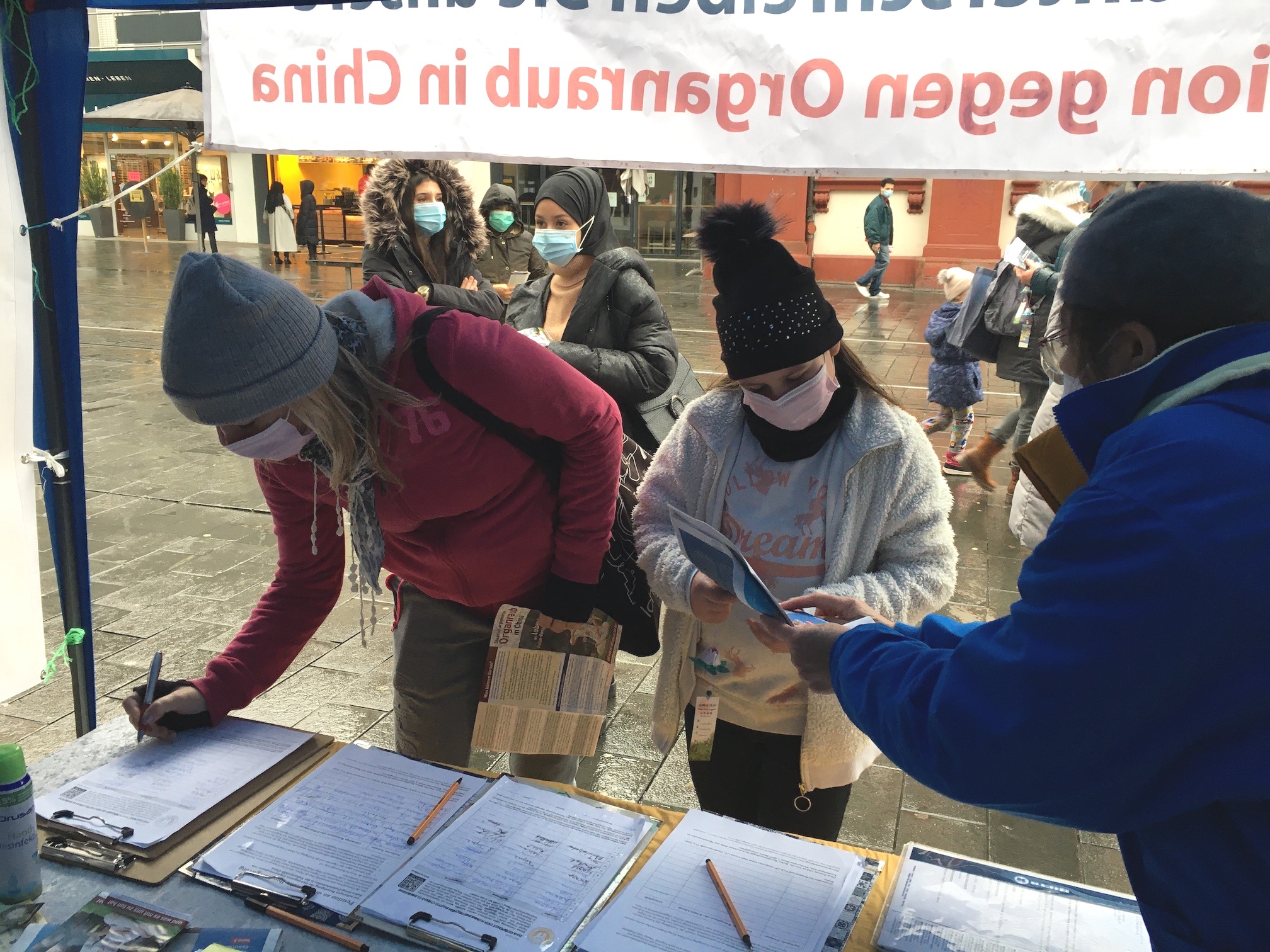 “你知道嘛,我今年八十二岁了,” 一位老先生和学员聊了起来,“我年轻的时候由于工作原因在东欧居住了十一年,我对共产社会有一定的了解。那里的人们也同样遭受了很多迫害和苦难。共产主义意识是邪恶的,是全人类的祸害。“老先生接着又说:“这个征签活动我很支持,但光靠我们普通民众的力量还不够。”学员马上说到:“征签的表格最后我们要全部送到联邦政府。”老先生很认同的说:“对,对,一定要让德国政府知道这件事情。全世界的人都应该享有信仰的自由。”