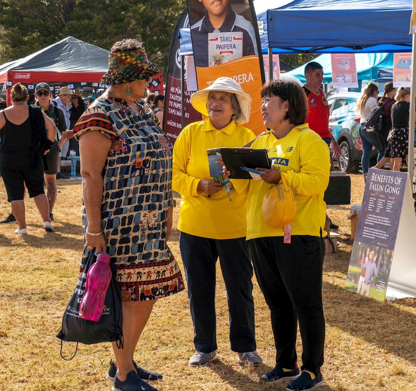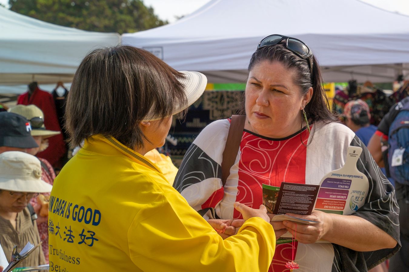 麦克斯·库帕(Max Cooper)是一位酒店的主管,她来到介绍法轮功的展位,表示非常感兴趣。她说:“我喜欢打坐,我们毛利族裔有着很相似的理念,我们非常相信能量、精神、灵性这些方面的东西。这是神给予人最为精华的东西。我们只是表达的语言、实践的方式不同而已。我们毛利人非常崇尚精神层面上的东西,我们向创世主祈祷。这不是宗教,也不是人的身体或者思想领域的东西,而是存在于另外时间和空间的。”
