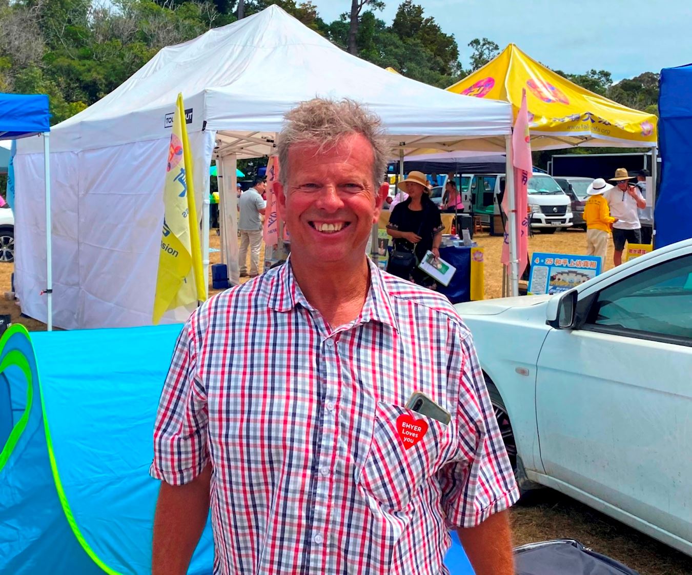 雷·沃特金斯(Ray Watkins)曾经是新西兰一家公司的老总,去年刚退休。这家公司在二十几年前就在中国设立了加工厂,所以他访问过中国许多城市。他和妻子苏珊(Susan)十分喜欢天国乐团和腰鼓队的表演。他们惊叹天国乐团的成员年龄跨度,居然从八、九岁的孩子一直到七十多岁的老人,他们也喜欢腰鼓队鲜艳的服饰、优美的舞姿。他们更欣赏法轮功学员们所要传达的真、善、忍理念。沃特金斯说:“他们(法轮功学员)一定是有着健康、快乐的生活方式。真、善、忍理念是所有人都应该遵循的。因为那将使生活变得非常美好,去掉仇恨、沮丧、其它负面的东西和那些不健康的、使生命变得脆弱的东西,这是我们都应该追寻的真理。”