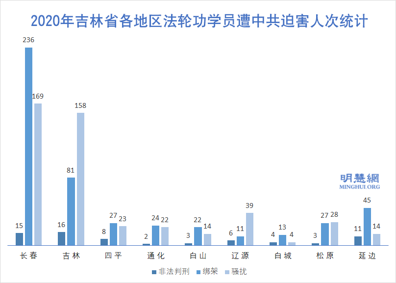 ![]() 图1:2020年吉林省法轮功学员遭中共迫害人次统计 |