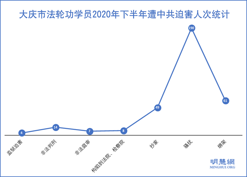 ![]() 图1:大庆市法轮功学员2020年下半年遭中共迫害人次统计 |