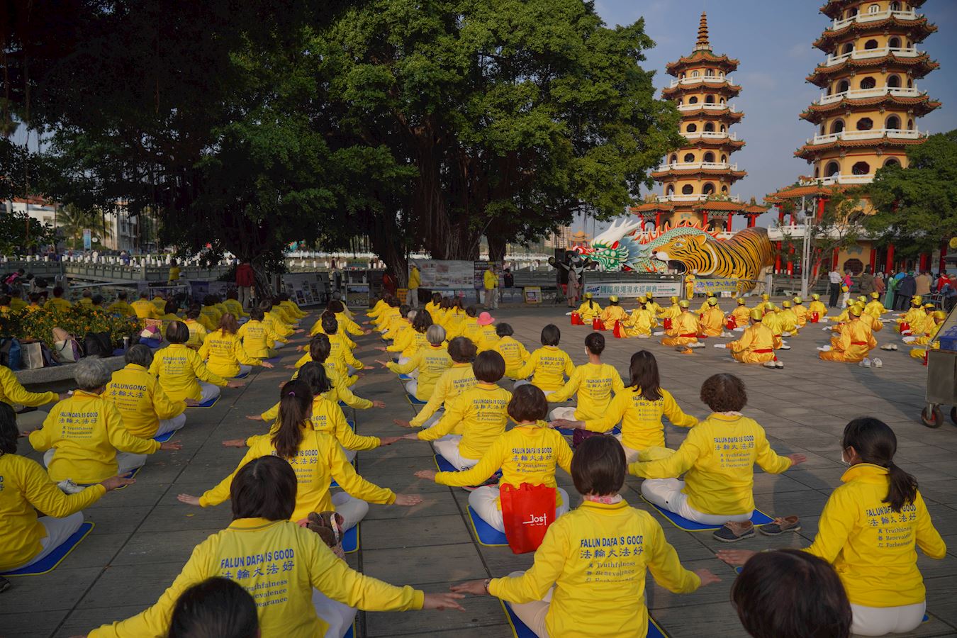 ![]() 图1~2:二零二一年一月三十一日周日下午,高雄部份法轮功学员于著名旅游景点“莲池潭龙虎塔”边广场炼功弘法,并于中国新年前夕恭祝师尊新年好。 |