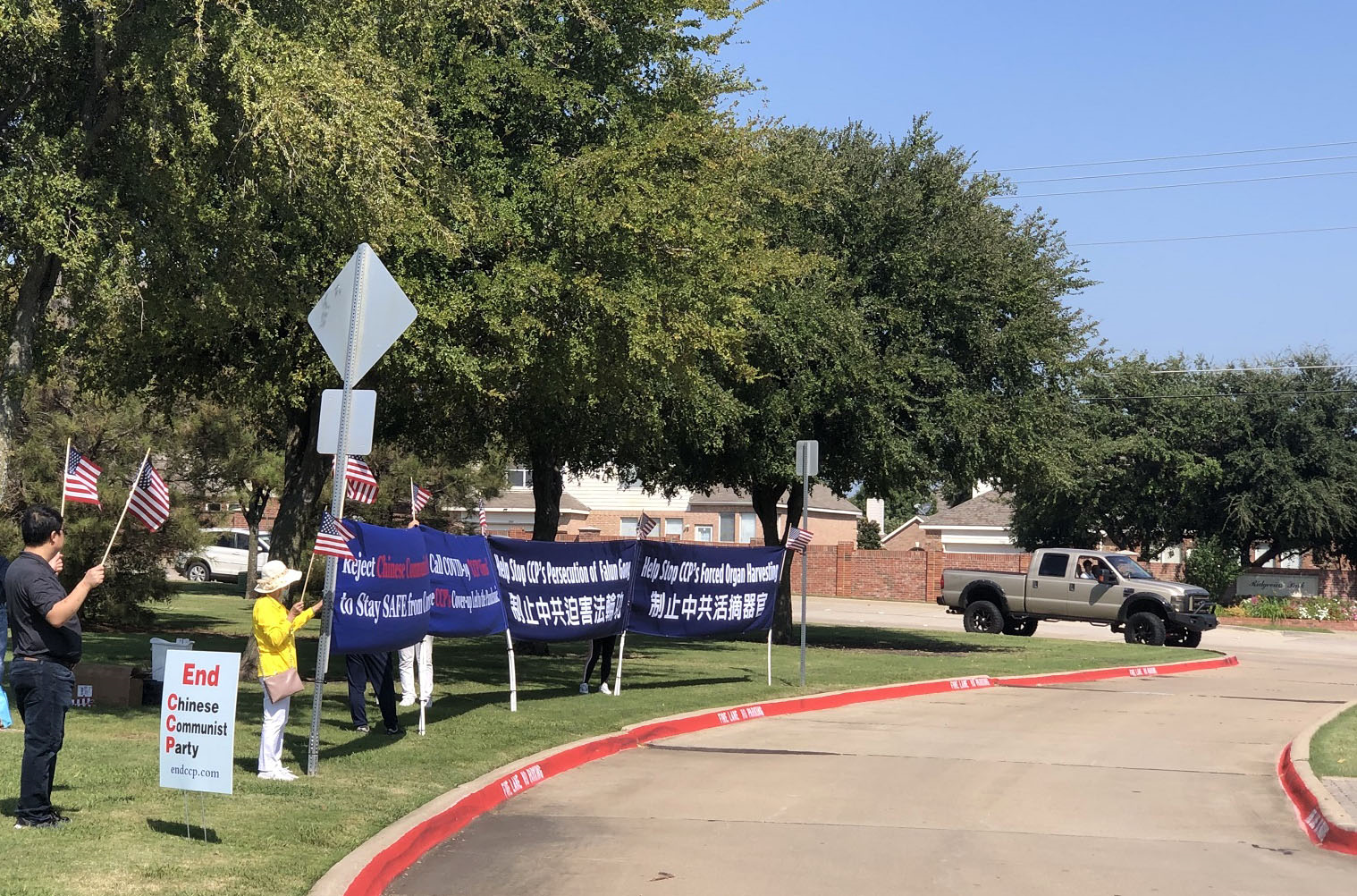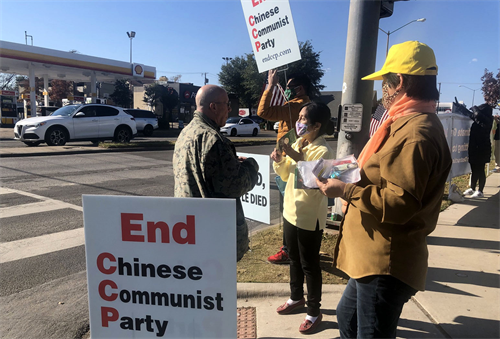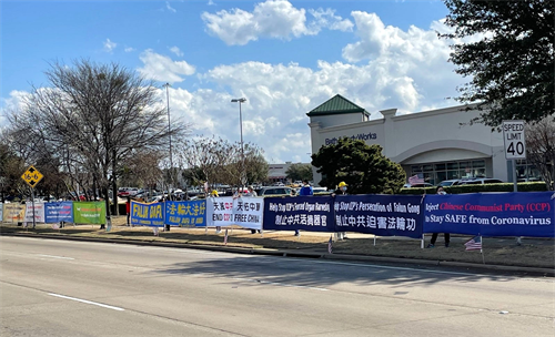 大达拉斯地区由几十个小城市组成,北部地区的一些多个城市居民人口相对较多、收入较高,交通繁忙。从去年到二零二一年二月以来,法轮功学员已经在达拉斯市(Dallas)、布兰诺市(Plano)、弗里斯科市(Frisco)、麦肯尼市(McKinney)繁忙的街道、购物中心旁展示了真相横幅。写有“制止中共迫害法轮功”、“制止中共活摘器官”、“远离中共 远离瘟疫”、“法轮大法好”等横幅获得人们的赞许,许多过往车辆的司机都鸣笛表示支持。
