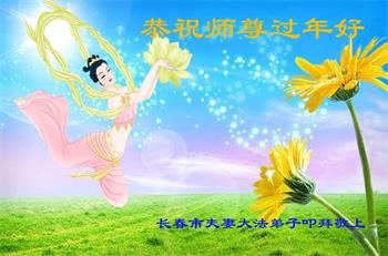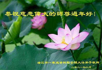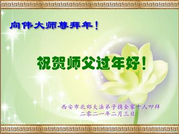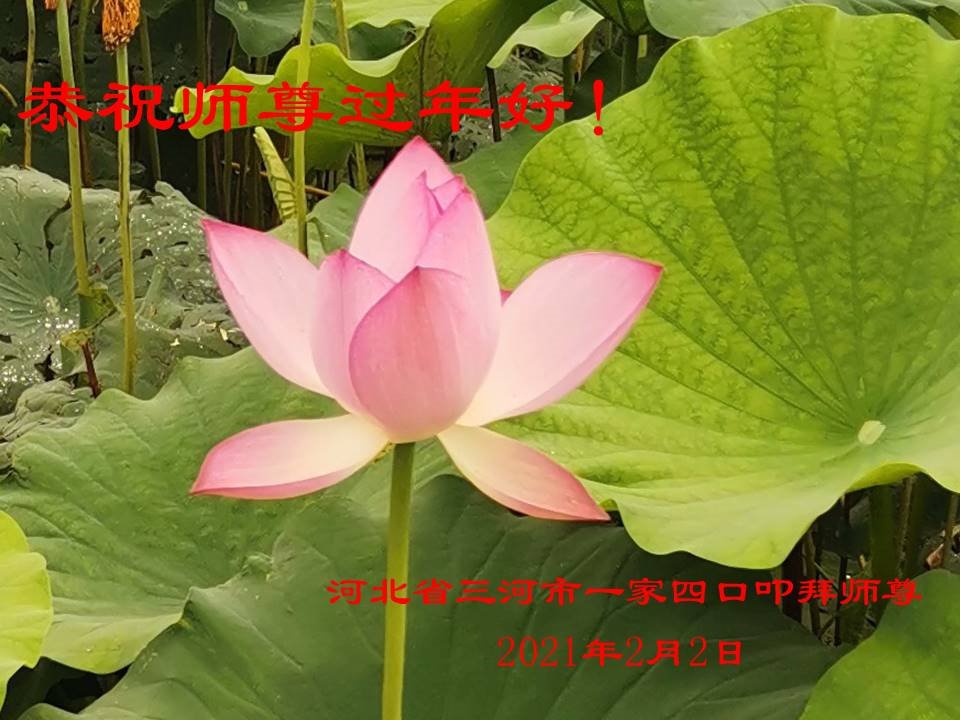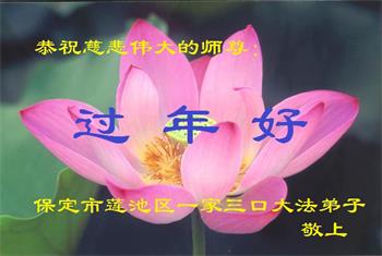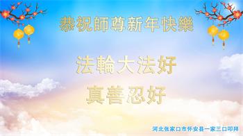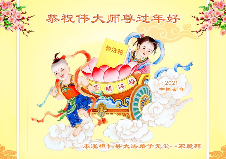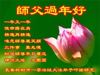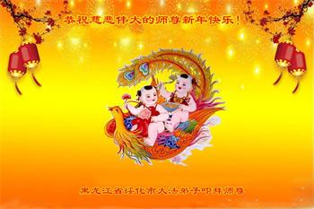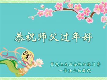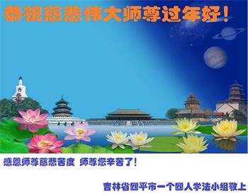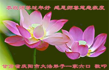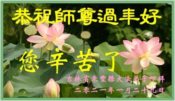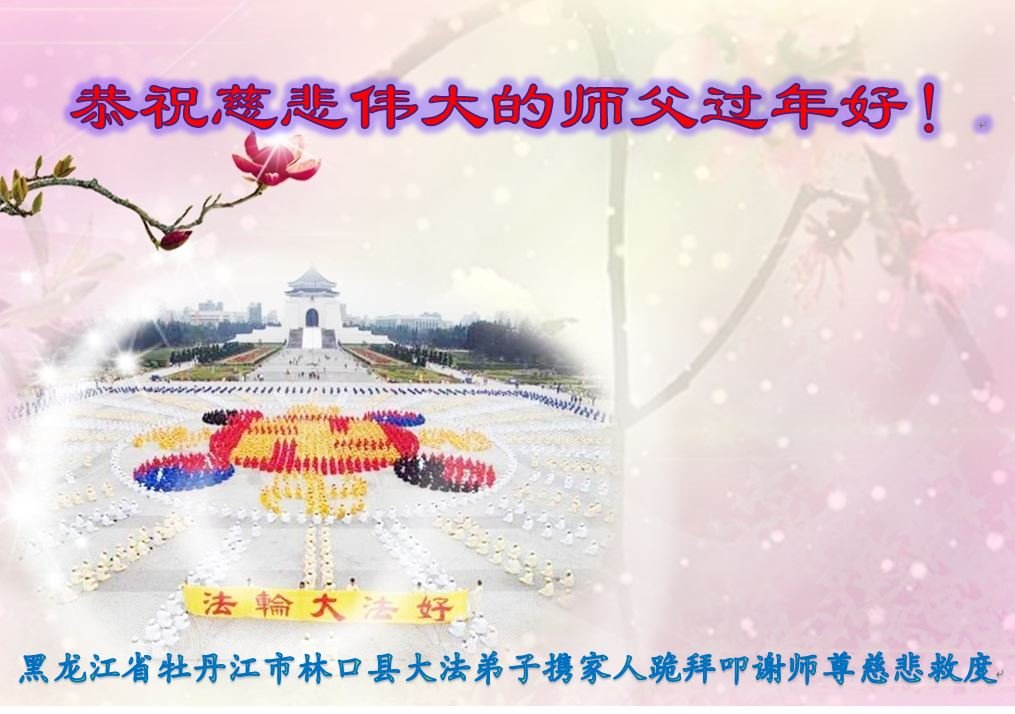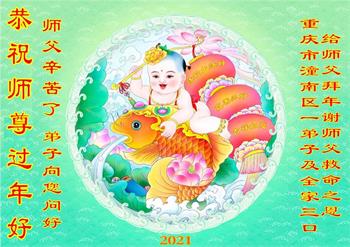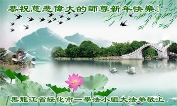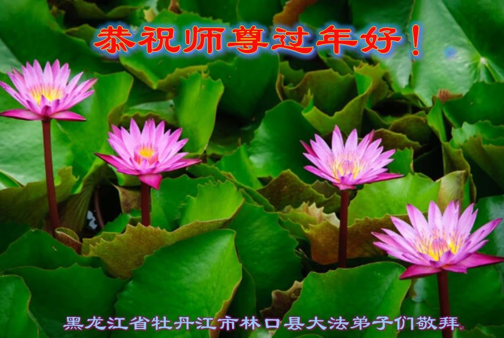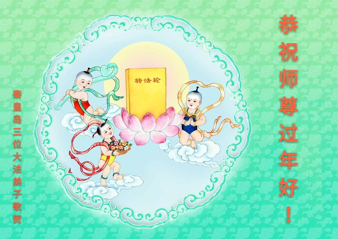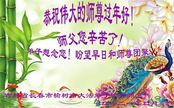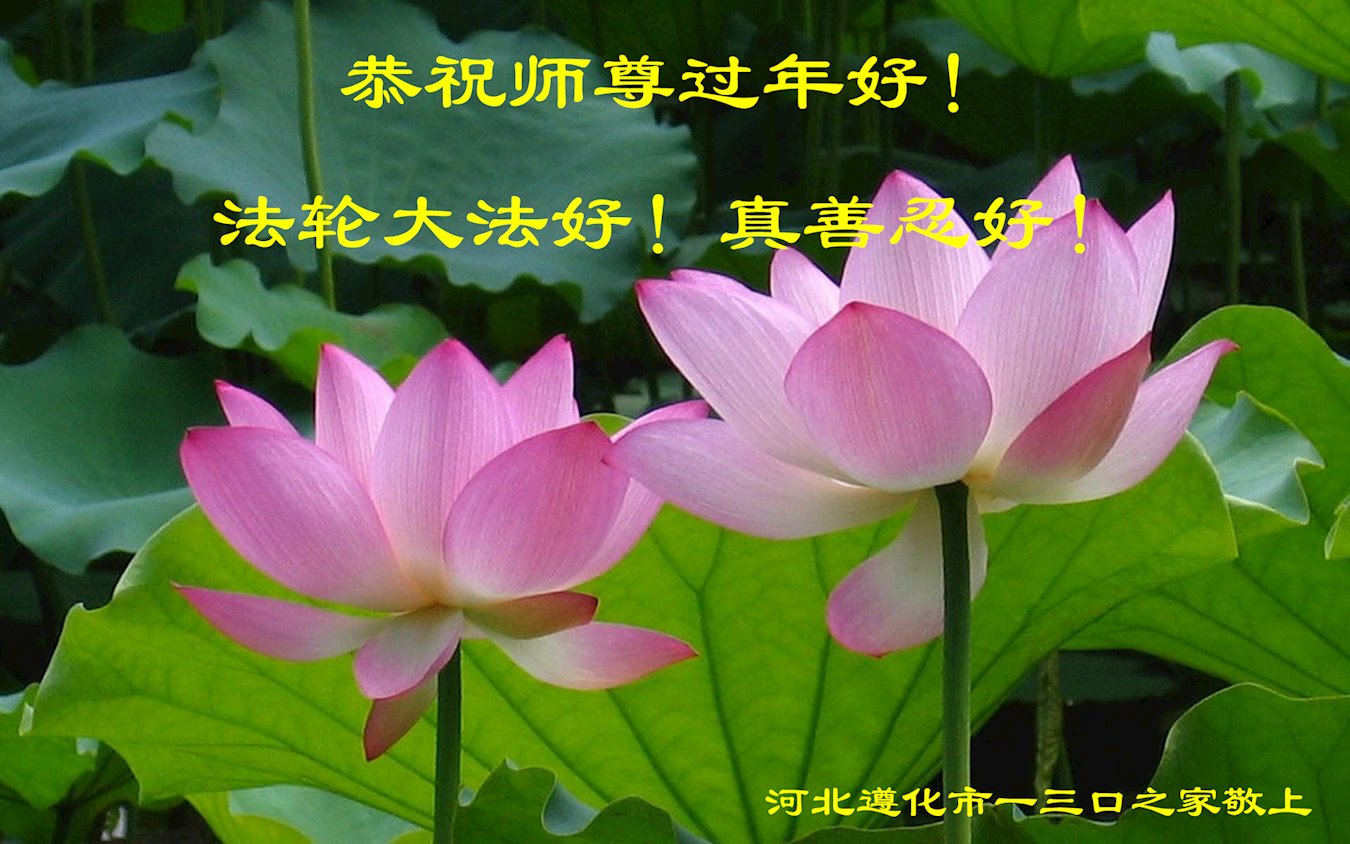 黑龙江省哈尔滨市一家人恭祝大师新年快乐!他们说:“在这中共病毒瘟疫肆虐、多灾多难的时候,我们不会惧怕,我们相信在大师的慈悲保护下,心怀善念,常颂‘法轮大法好,真善忍好!’这避瘟良方定会使全家平安健康,渡过劫难。”
