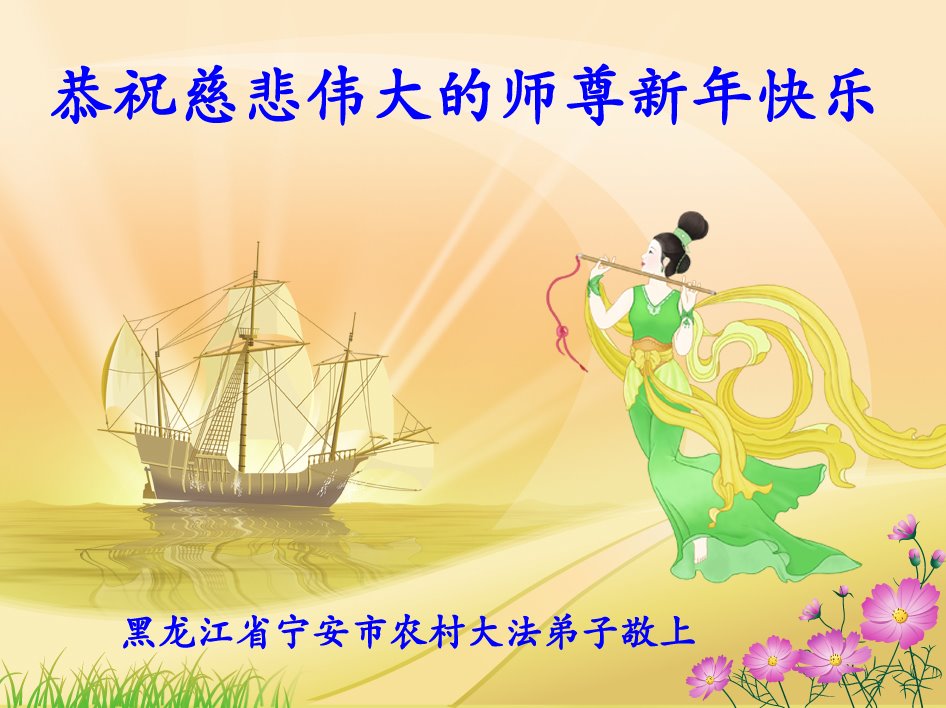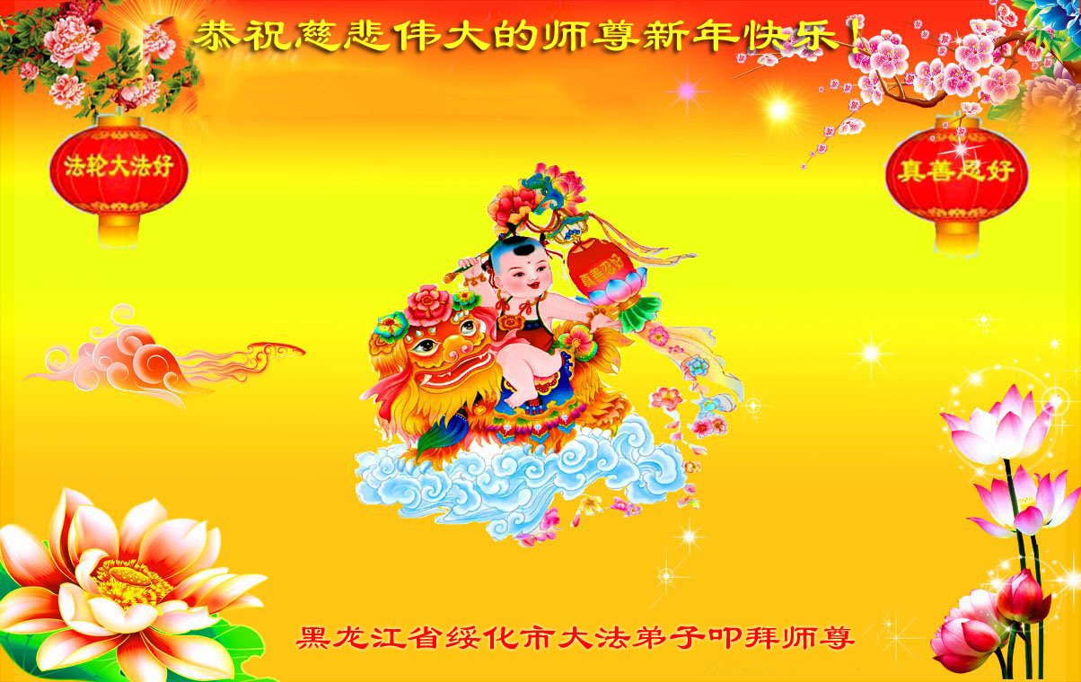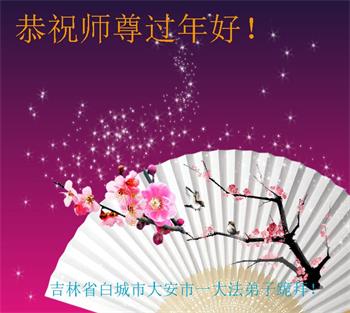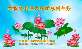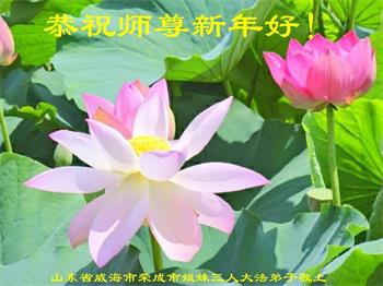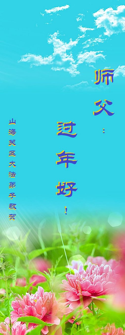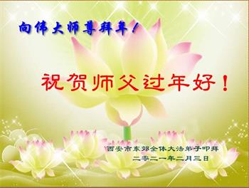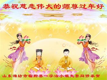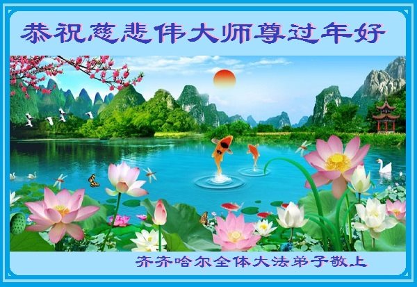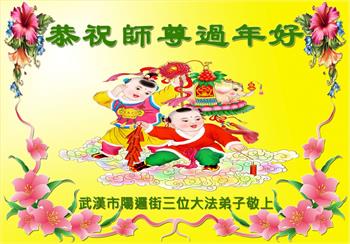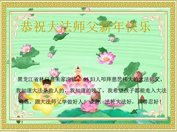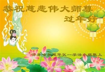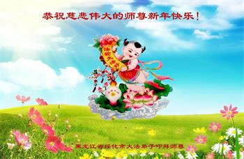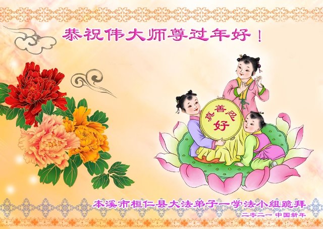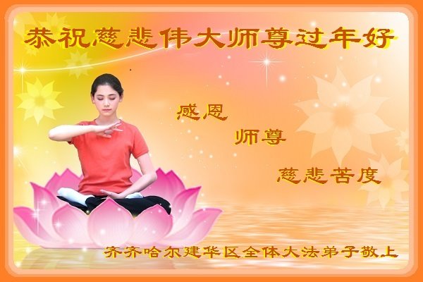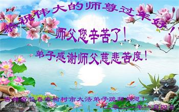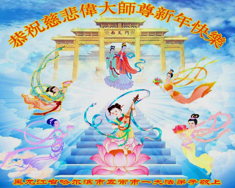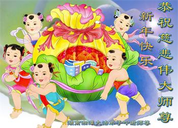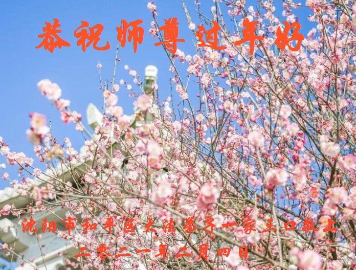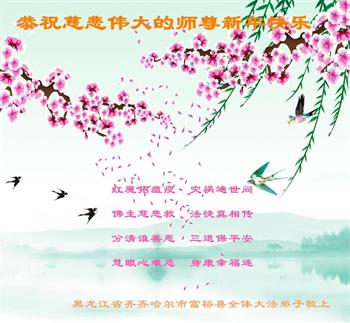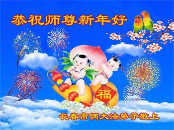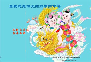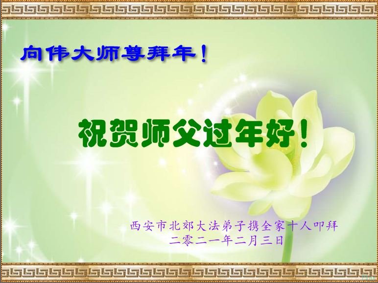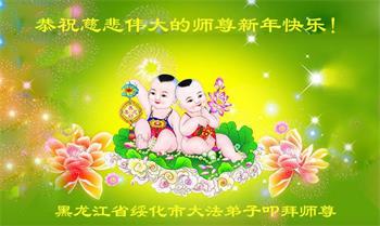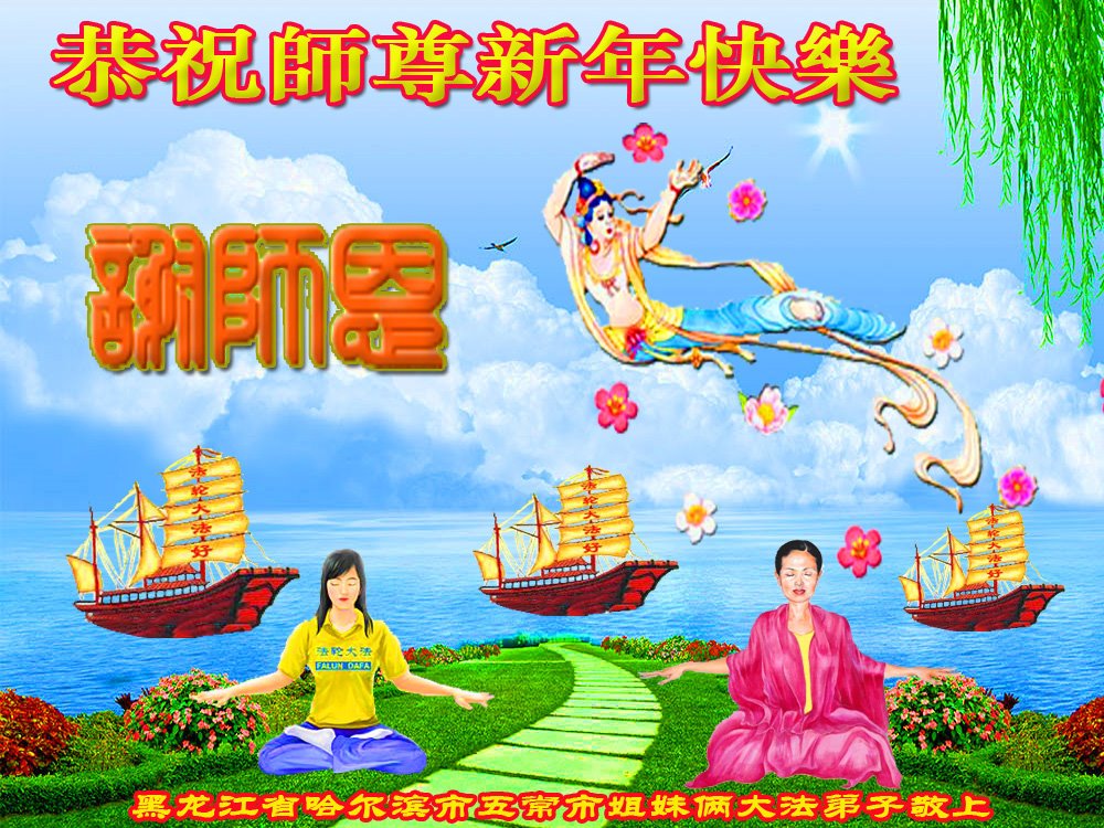 黑龙江省哈尔滨市一家人恭祝大师新年快乐!他们说:“在这中共病毒瘟疫肆虐、多灾多难的时候,我们不会惧怕,我们相信在大师的慈悲保护下,心怀善念,常颂‘法轮大法好,真善忍好!’这避瘟良方定会使全家平安健康,渡过劫难。”