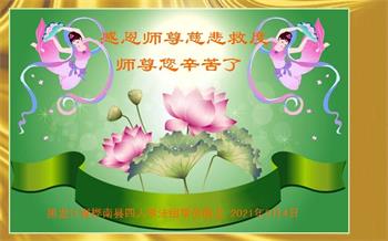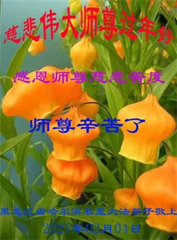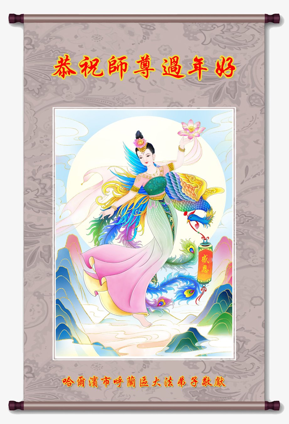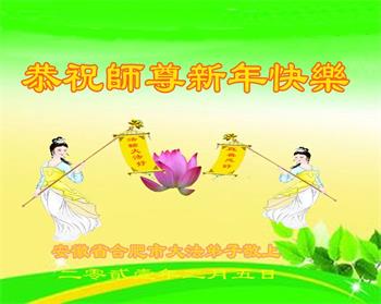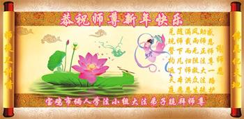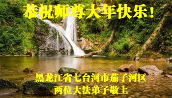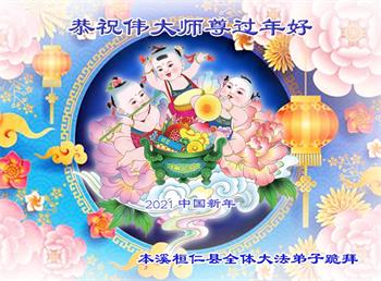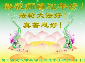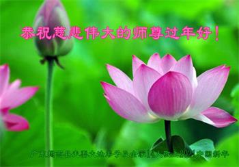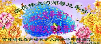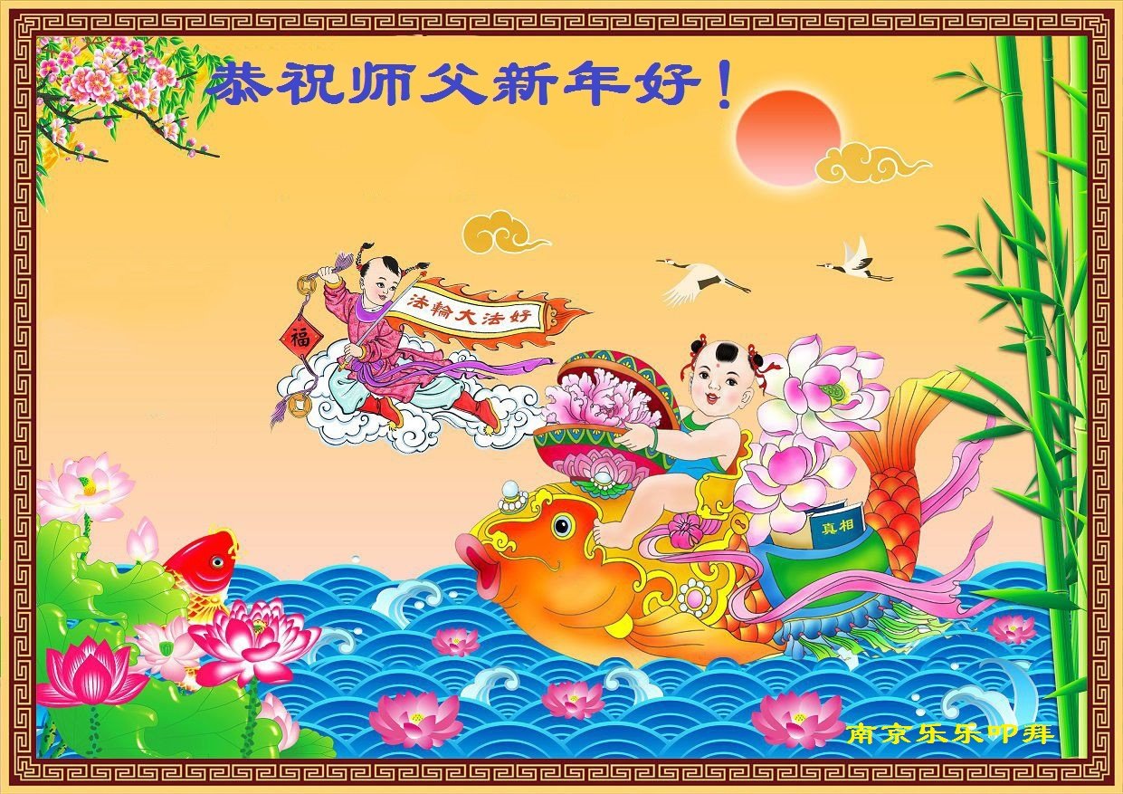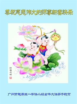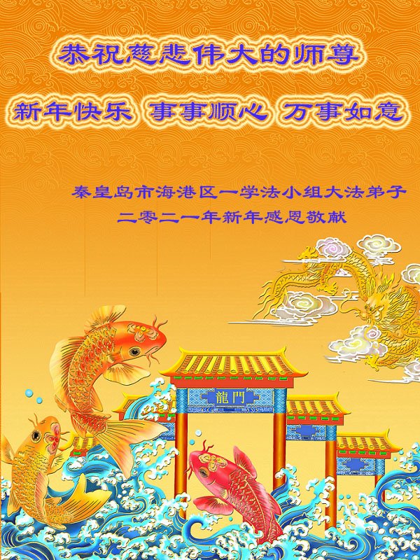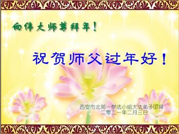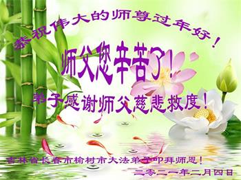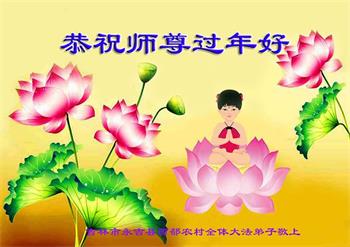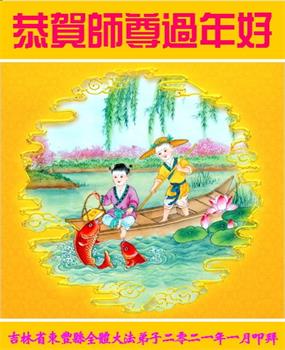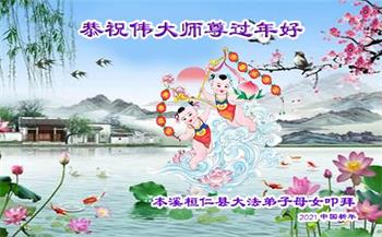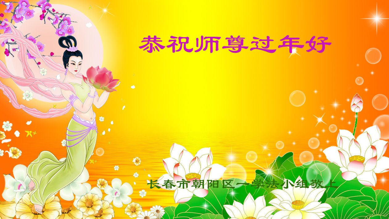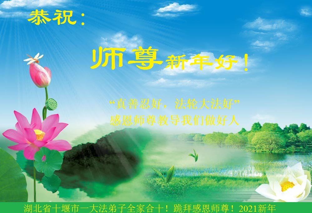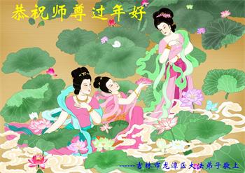 黑龙江省哈尔滨市一家人恭祝大师新年快乐!他们说:“在这中共病毒瘟疫肆虐、多灾多难的时候,我们不会惧怕,我们相信在大师的慈悲保护下,心怀善念,常颂‘法轮大法好,真善忍好!’这避瘟良方定会使全家平安健康,渡过劫难。”