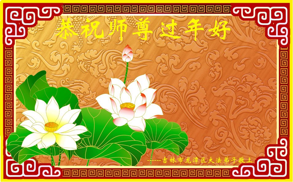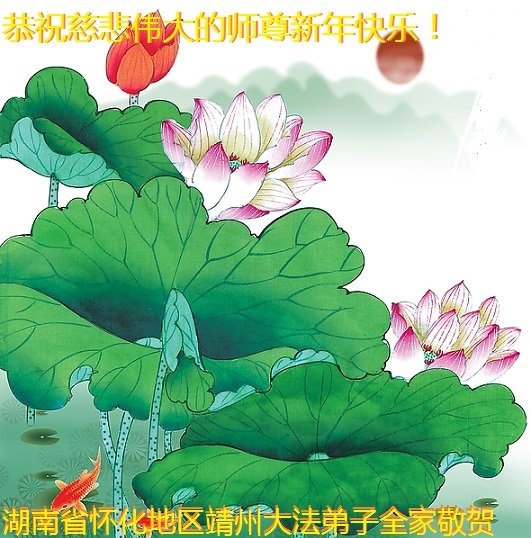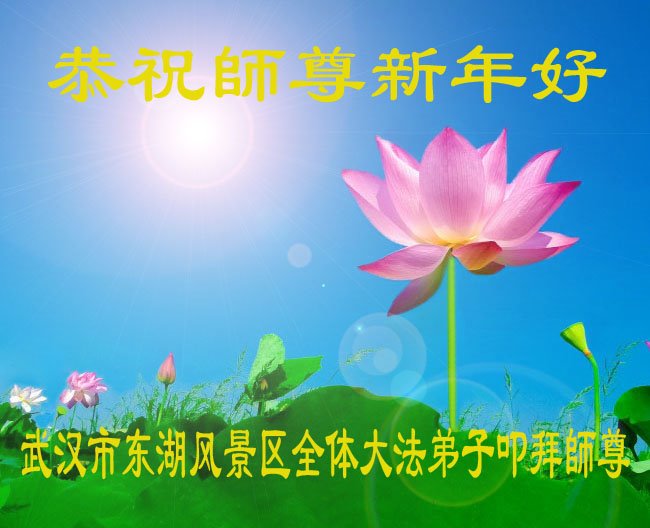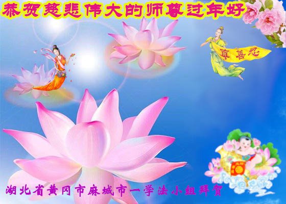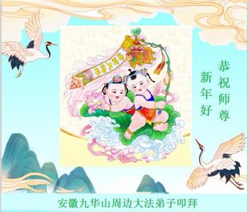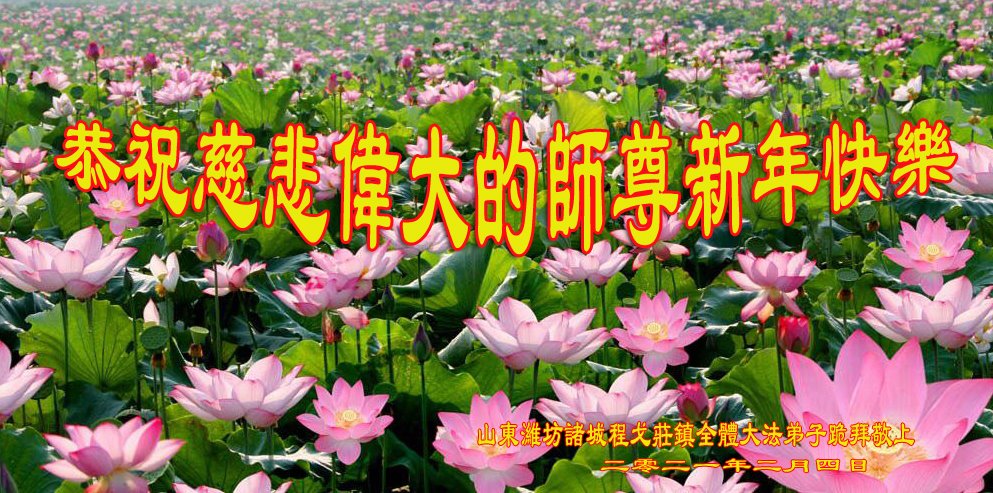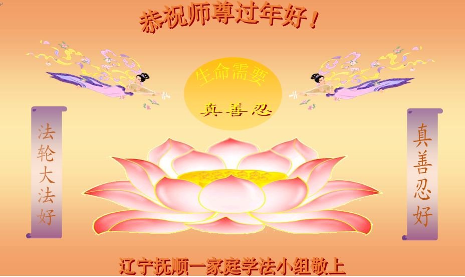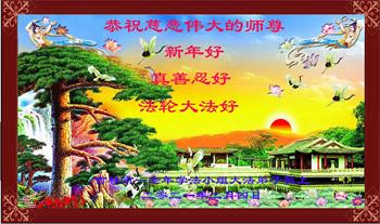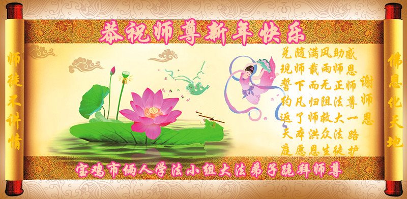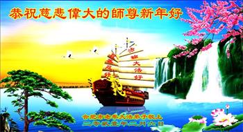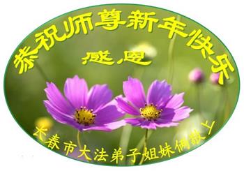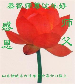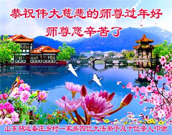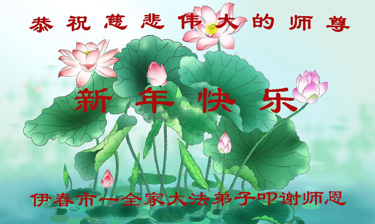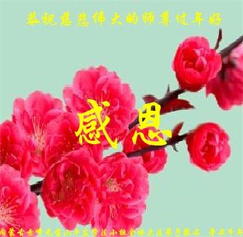 我们全家老少四世同堂二十几人,向慈悲伟大的李洪志大师献上最诚挚的新年祝福和感恩:恭祝大师新年快乐!万事如意!全家幸福!感谢大师佛恩浩荡救度无量众生!更使我们全家身心受益得福报。
