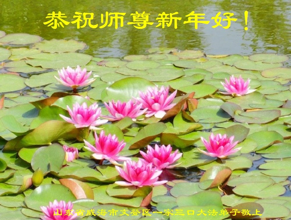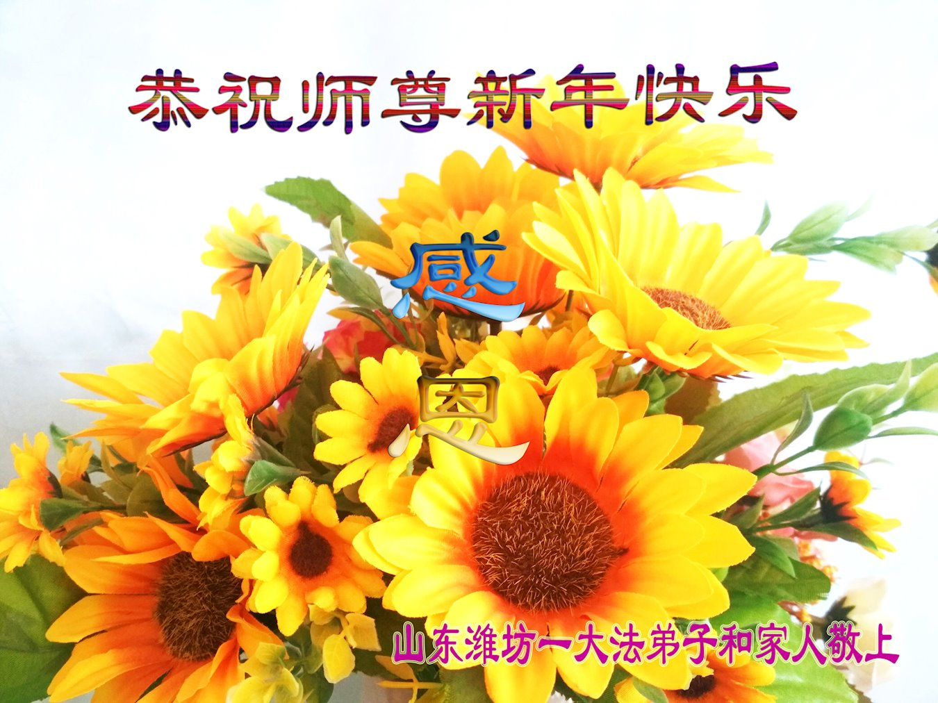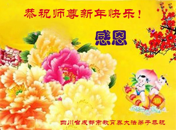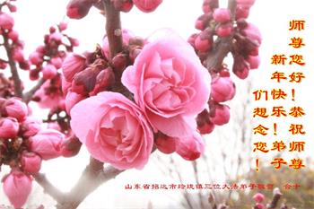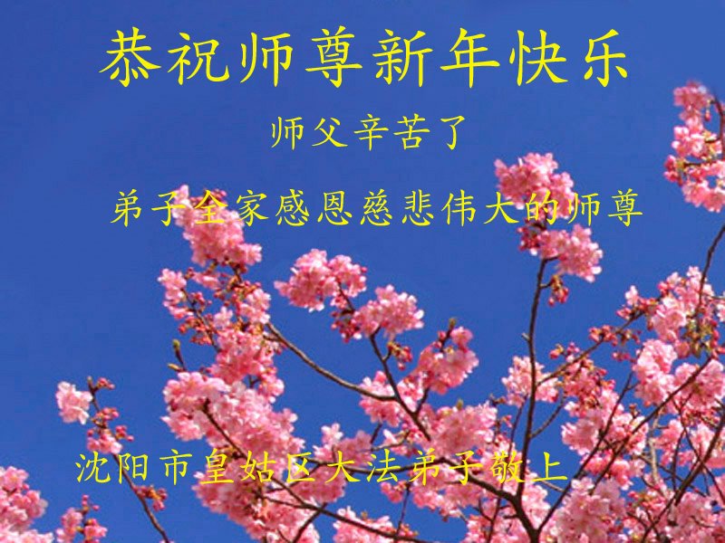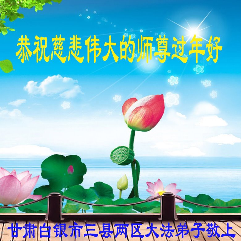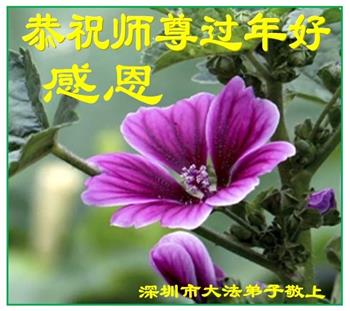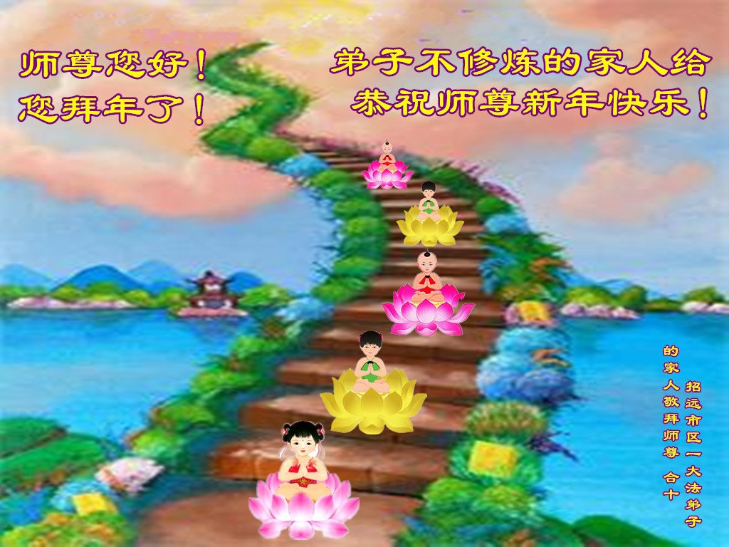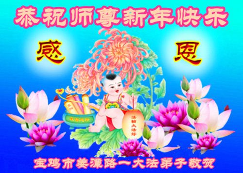 我们全家老少四世同堂二十几人,向慈悲伟大的李洪志大师献上最诚挚的新年祝福和感恩:恭祝大师新年快乐!万事如意!全家幸福!感谢大师佛恩浩荡救度无量众生!更使我们全家身心受益得福报。