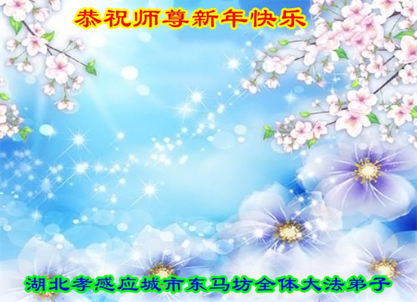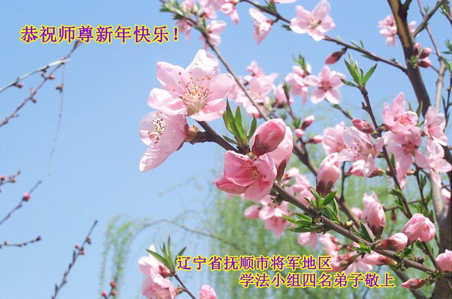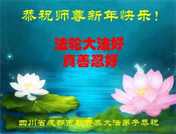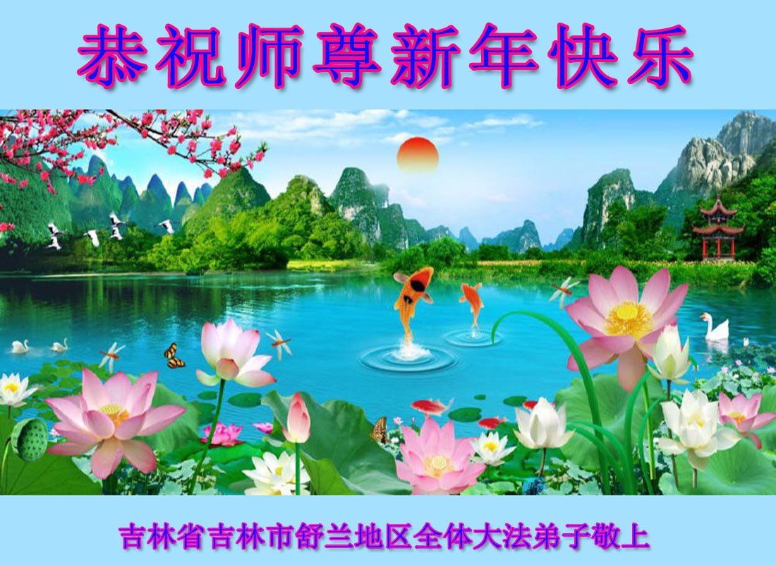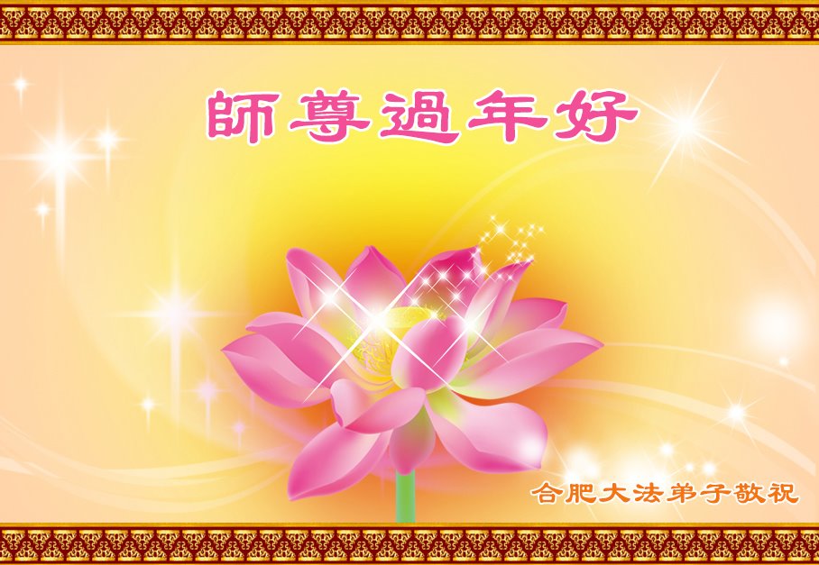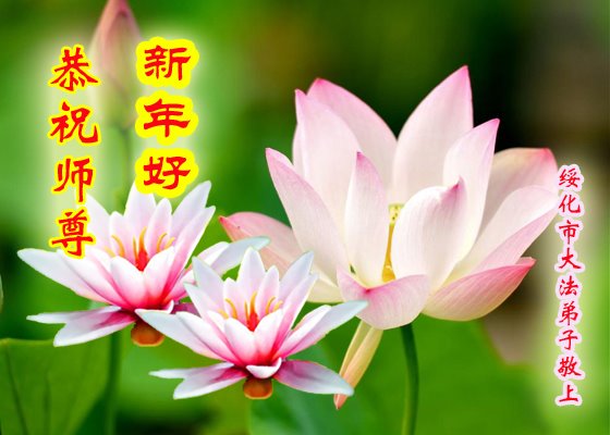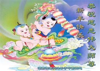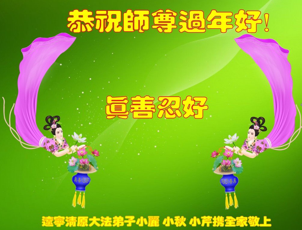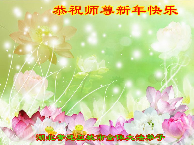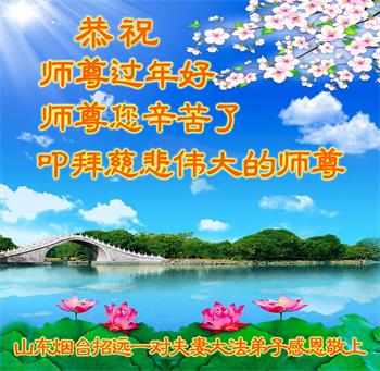 我们全家老少四世同堂二十几人,向慈悲伟大的李洪志大师献上最诚挚的新年祝福和感恩:恭祝大师新年快乐!万事如意!全家幸福!感谢大师佛恩浩荡救度无量众生!更使我们全家身心受益得福报。