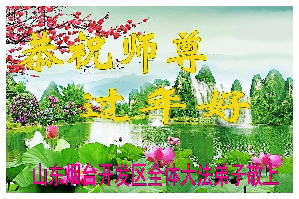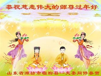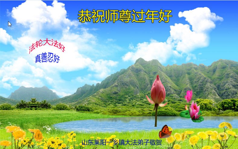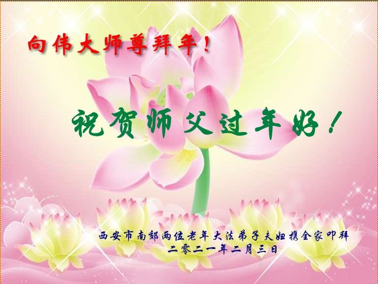我们是奉读大法、明白真相的世人,虽未修炼,但大法与大法师父遭到诽谤和诬陷时,只要我遇到,会毫不犹豫的站出来维护大法师父的尊严和名誉。因为大法是正的,大法师父是圣洁的,是来救人的。大法师父:过年了,我们夫妇俩给您拜年!祝您过年好!