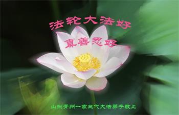 河北保定阜平县一大法弟子的儿女在贺词中说:“现在我们长大了,妈妈遭(中共)迫害骚扰时,我们会想办法保护妈妈,因为在妈妈身上,我们看到了大法的神奇。我们知道师父是救人的,大法是最正的,我们坚信,邪恶必灭,正义必胜,光明大显。”