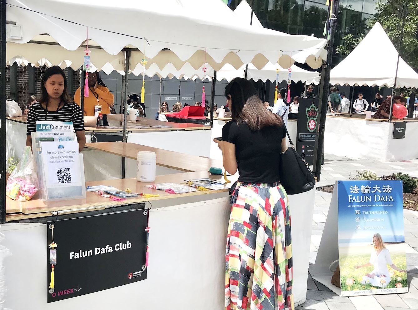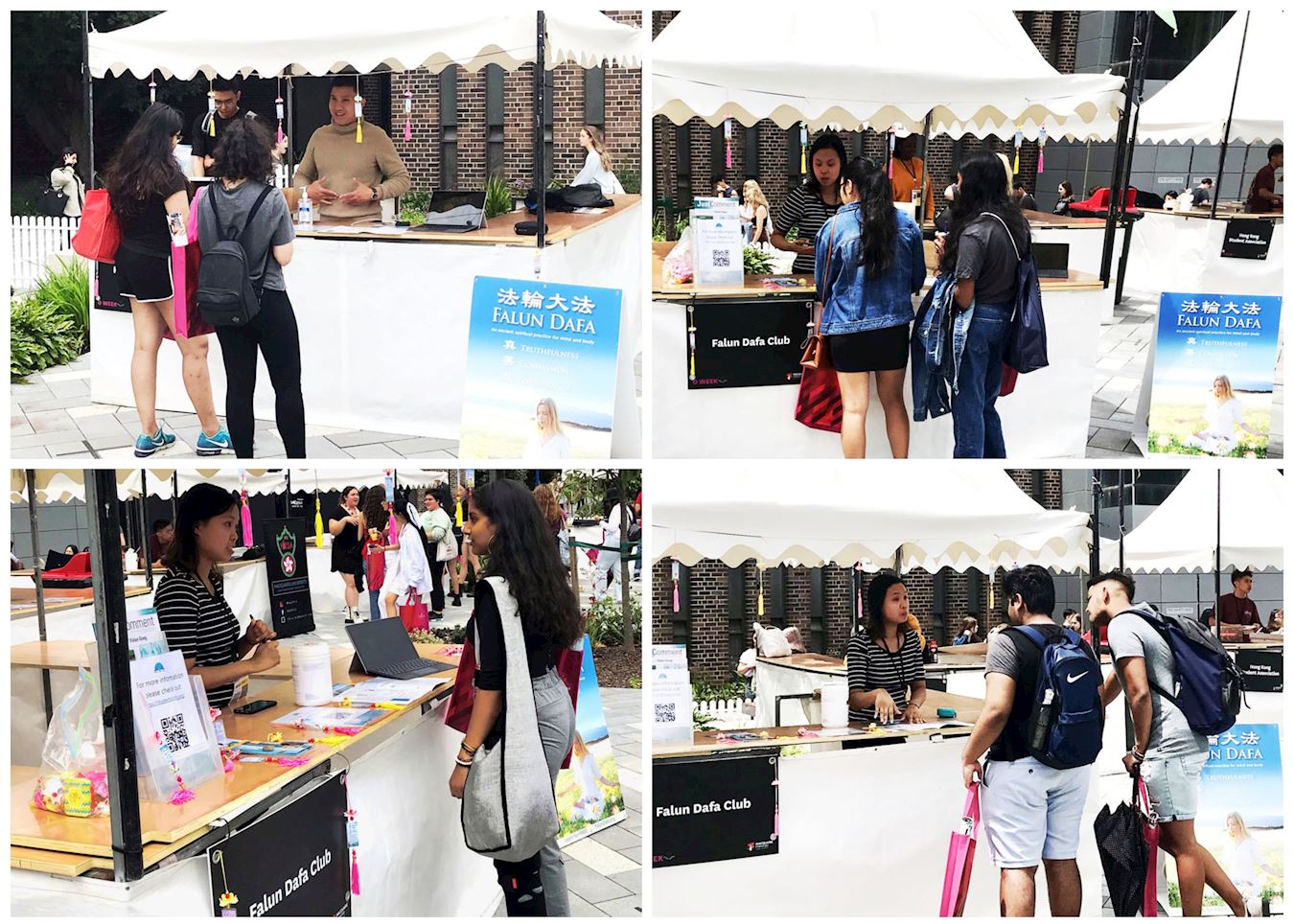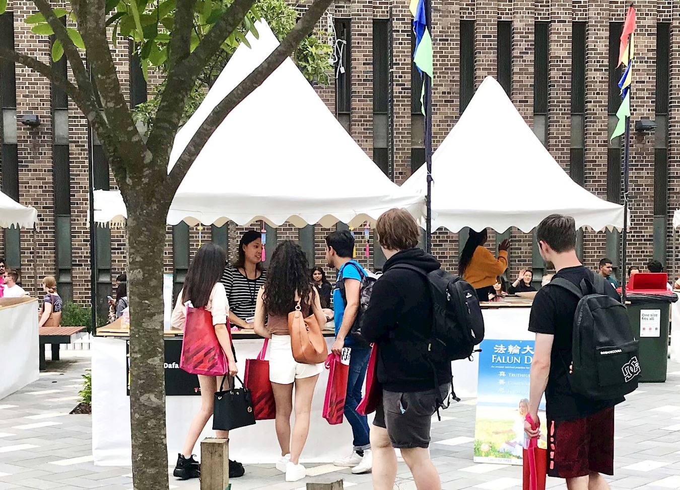 ![]() 图1~2:在悉尼麦考瑞大学迎新周活动中,众多师生和新生前来了解法轮大法真相。 |