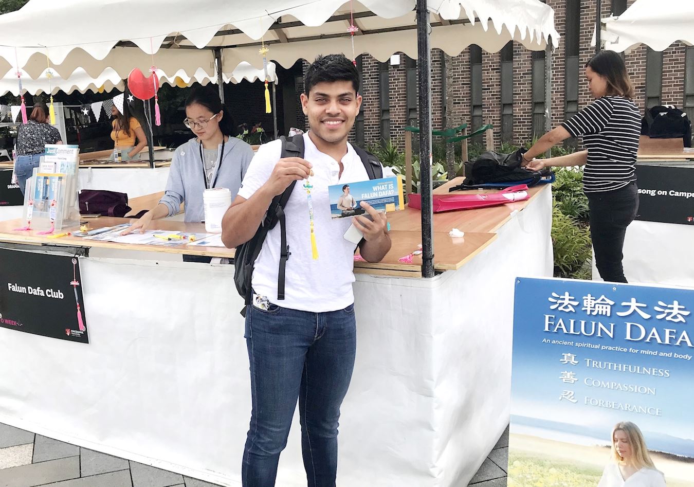 一位来自巴基斯坦的大学生赛义德·埃玛德·里兹旺(Syed Emaad Rizwan)说:“这是我第一次了解法轮大法。”当赛义德听到这么好的修炼法门在中国遭到镇压,中共迫害法轮功学员和活摘他们器官的真相时,他表示:“中共仅仅因为信仰而杀害无辜的人民是可怕的。目前,我自己正在努力打坐,但我还没有达到一种祥和宁静的状态,我认为要达到这种状态,必须要修到很高境界。我认为法轮大法真、善、忍修炼原则非常好,我今天希望注册加入法轮大法社团开始真正修炼。”