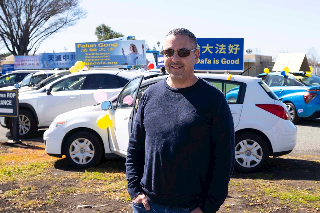 西人法轮功学员克里斯(Chris)也来参加汽车游行。他表示,通过这种传统的汽车游行,可以认人们看到中共犯下的罪行。同时我们也希望让人们知道法轮大法好。