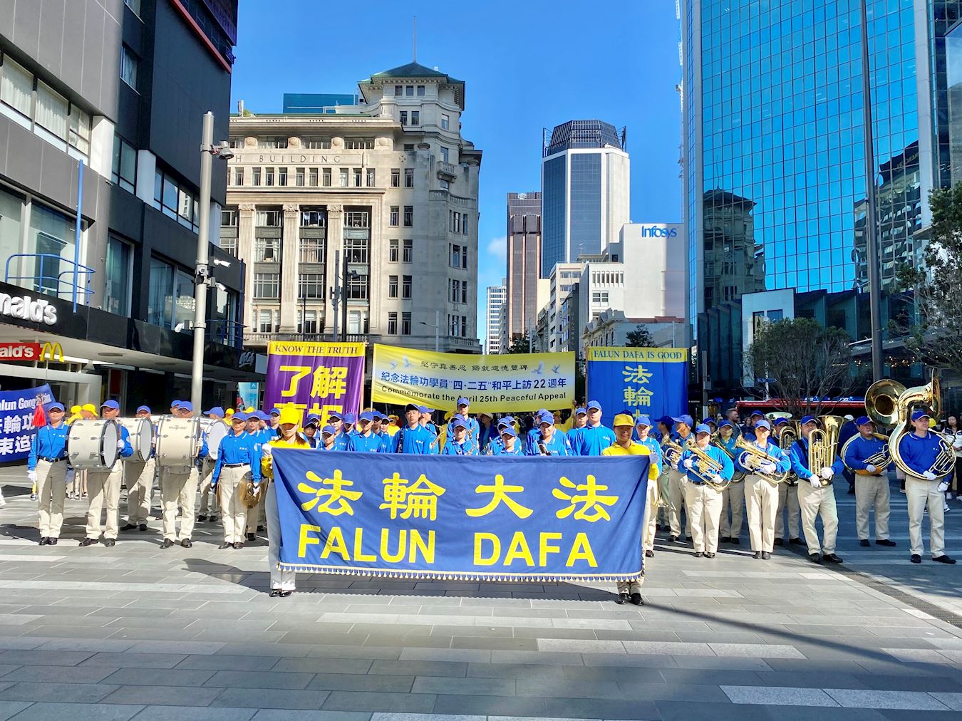 ![]() 图1:二零二一年四月十七日,奥克兰法轮功学员们在市中心伊丽莎白广场举办“纪念四二五和平上访二十二周年”集会。 |