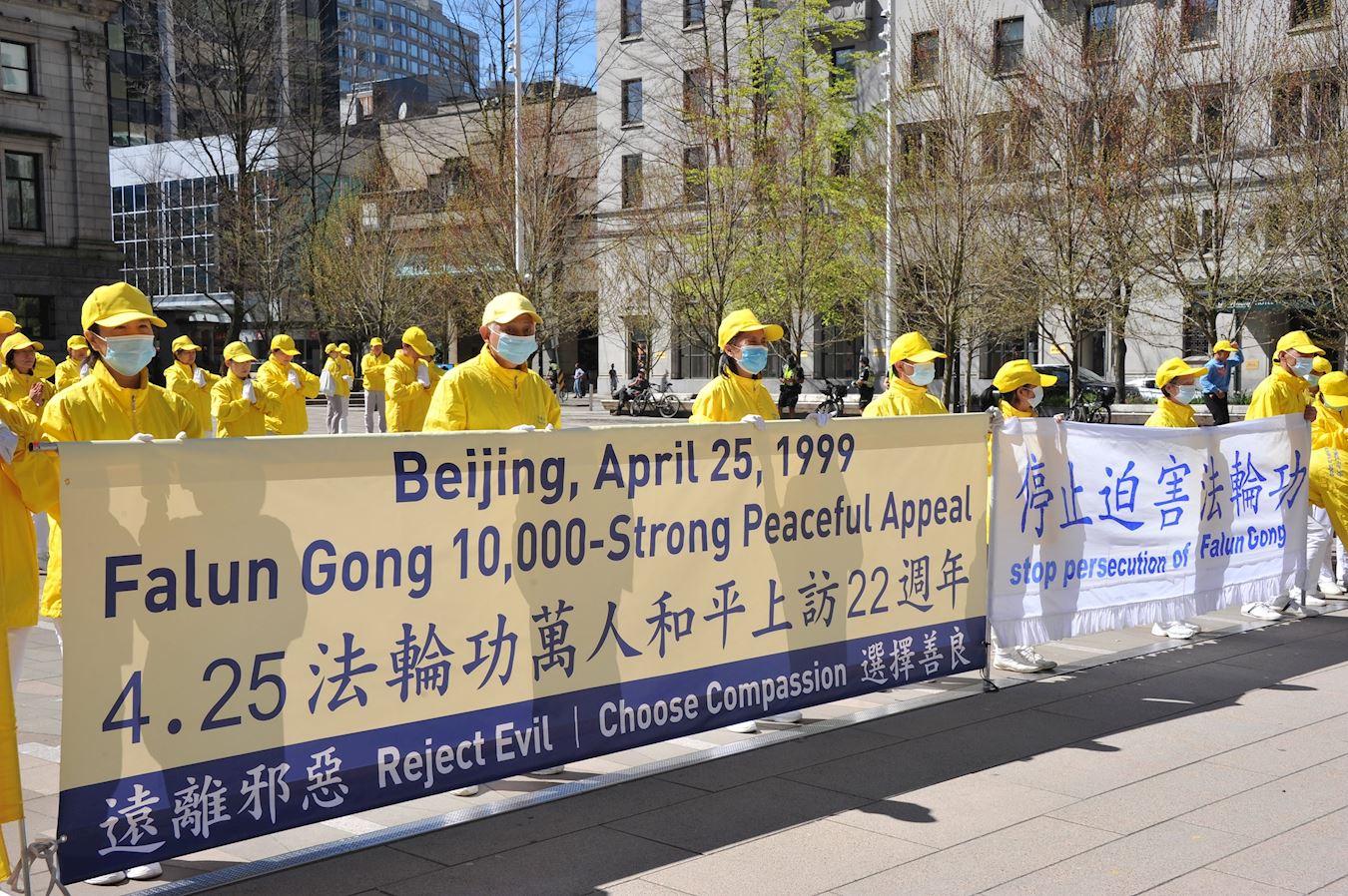 <英文版: http://en.d2s3ombhnov3zf.cloudfront.net/html/articles/2021/4/22/191983.html>温哥华学员集体炼功纪念四二五和平上访