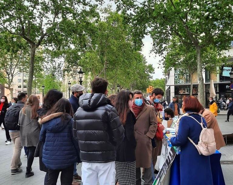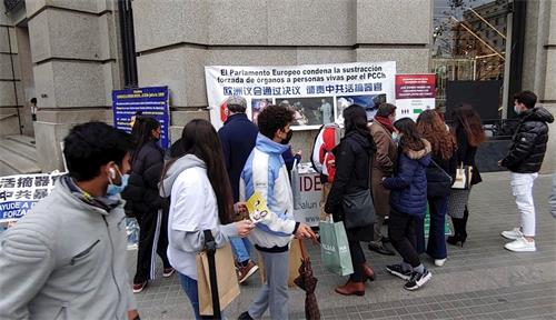 ![]() 图1~2:法轮功学员们来到最繁华的市中心广场-加泰罗尼亚广场(Catalonia)传播真相 |