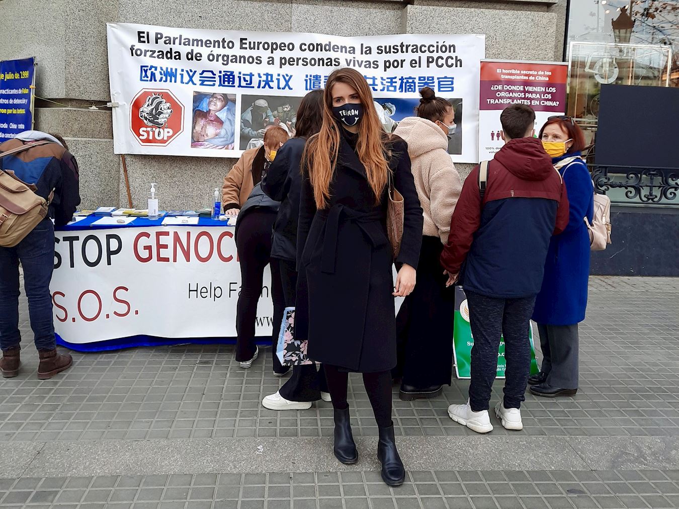 活动当天,在前来签名的人群中,有一位来自俄罗斯的年轻女士阿纳斯塔西娅(Anastasia),在签完名之后,低下头擦着眼泪。她告诉学员:看到展板上的照片,她很难过。她表示,虽然自己出生在苏联共产党倒台之后,但是,在俄罗斯,至今仍能感受到被共产主义戕害过的痕迹。她还表示愿意在真相展板前留影,表达她对法轮功反迫害的支持。