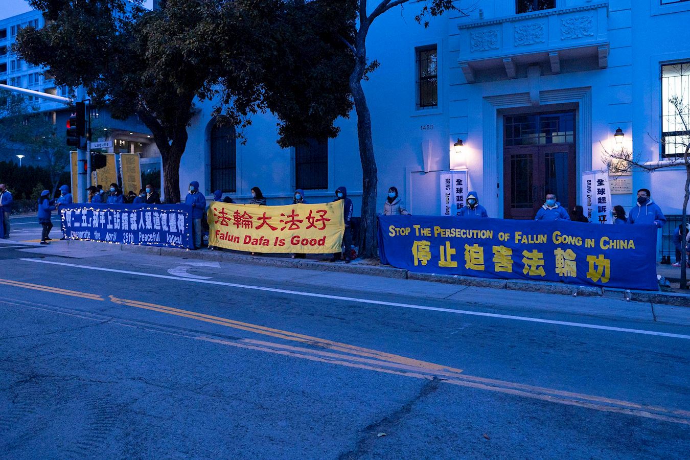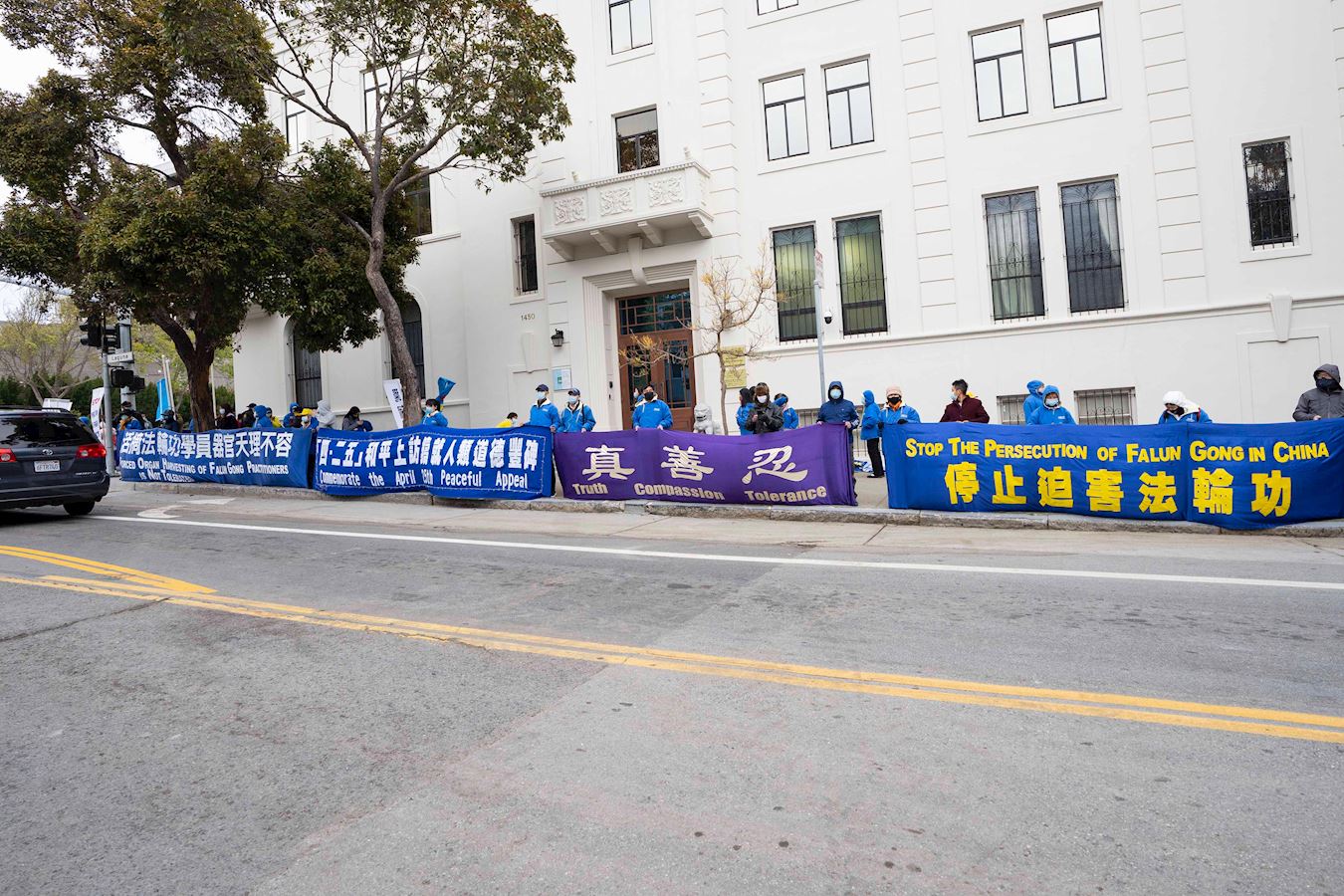 ![]() 图1~7:旧金山法轮功学员在中使馆前纪念“四·二五”和平上访二十二周年 |