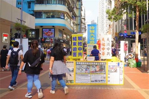 ![]() 图1~2:虽然多次遭到中共暴徒袭击,但香港法轮功学员没有退却,真相点一天都没有停止过。图为四月二十三日位于旺角豉油街的法轮功真相点。 |