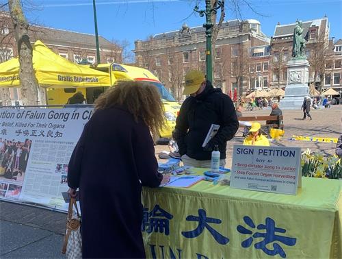 “天越来越亮,聚集的大法弟子越来越多,虽然大家互不相识,但由于修炼大法后心性的提高,秩序井然,整体体现出高度的律己和平静。大家自觉地排成三排,后两排的人一般坐着,或看《转法轮》,或打坐炼静功,前排站着的主要是年轻一些的学员。盲道和一半人行道被让出来,供来往的行人通行。
