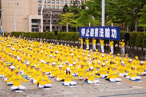 ![]() 图9~12:二零二一年四月二十五日在台北市政府前广场举行纪念中国法轮功学员四·二五和平上访二十二周年记者会,记者会后法轮功演炼五套功法的大炼功活动。 |