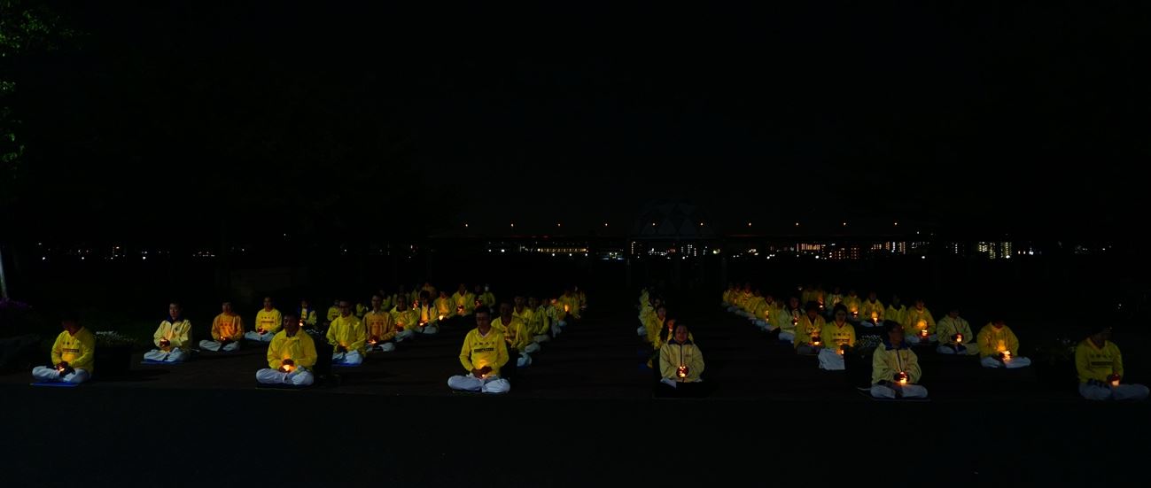 夜幕降临,学员们还举行了烛光悼念活动。黑暗中燃起点点烛光,悼念多年来在中国被迫害致死的法轮功学员,寄托哀思。