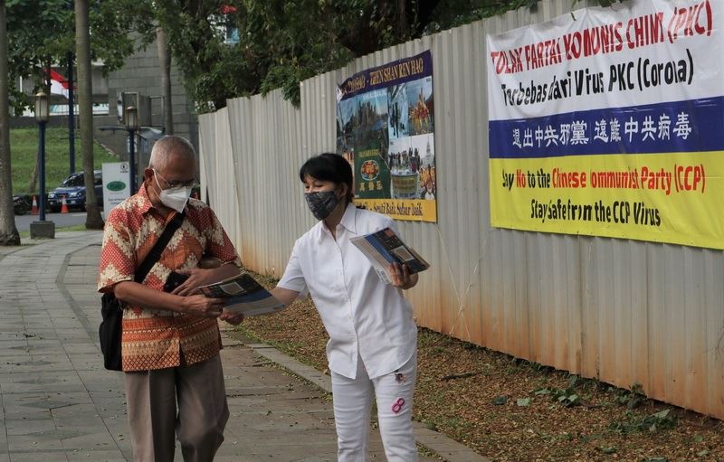 ![]() 图1:法轮大法学员在驻雅加达中国大使馆前和平抗议 |