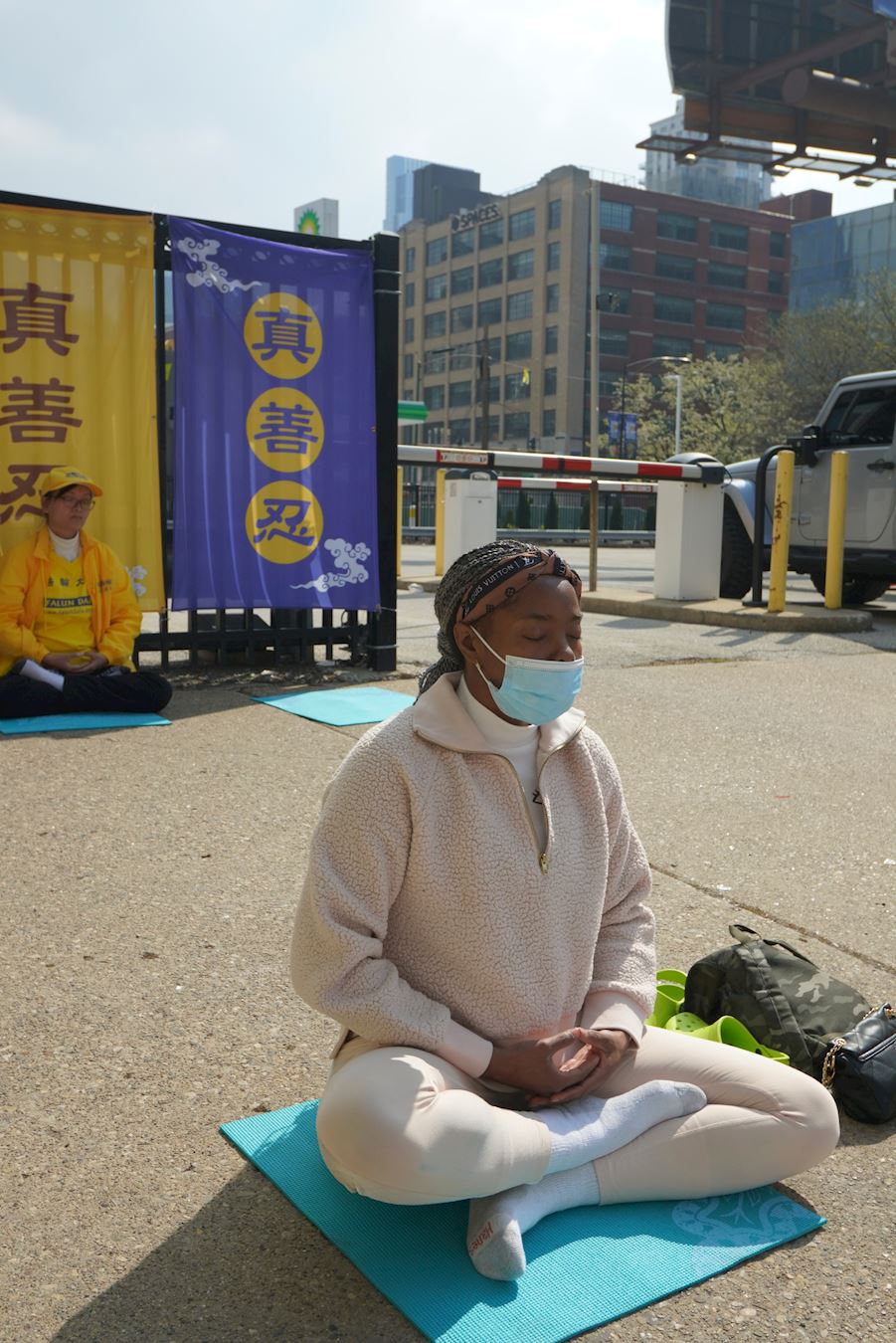 Molly Brinson女士在芝加哥生活了近三十年,是一个医疗从业者。她今年三月初从一个视频网站上了解到法轮功不仅是一个祛病健身的功法,更教人道德向上。为了学习法轮功功法,她几周前生平第一次去芝加哥中国城找到法轮功炼功点。而这次纪念四二五和平上访的集会,是她第一次参加法轮功的活动。