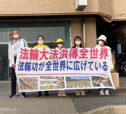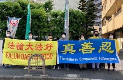 下午,法轮功学员们来到名古屋中领馆前进行和平抗议,要求中共立即停止对法轮功学员的迫害、立即停止活摘法轮功学员器官的暴行。学员们打出了写有“SOS停止迫害法轮功”、“立即停止活摘法轮功学员器官”、“法轮大法好”、“真善忍”的中英文横幅和 “法轮功弘传世界”等内容的日文横幅,吸引了过往市民的注意。