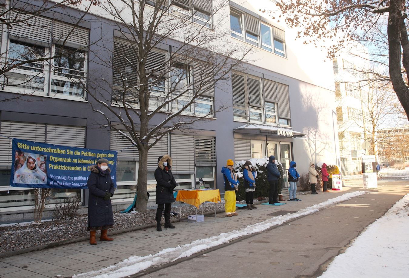 ![]() 图2:二零二一年二月十一日,大年三十,慕尼黑法轮功学员在中领馆前和平抗议。 |