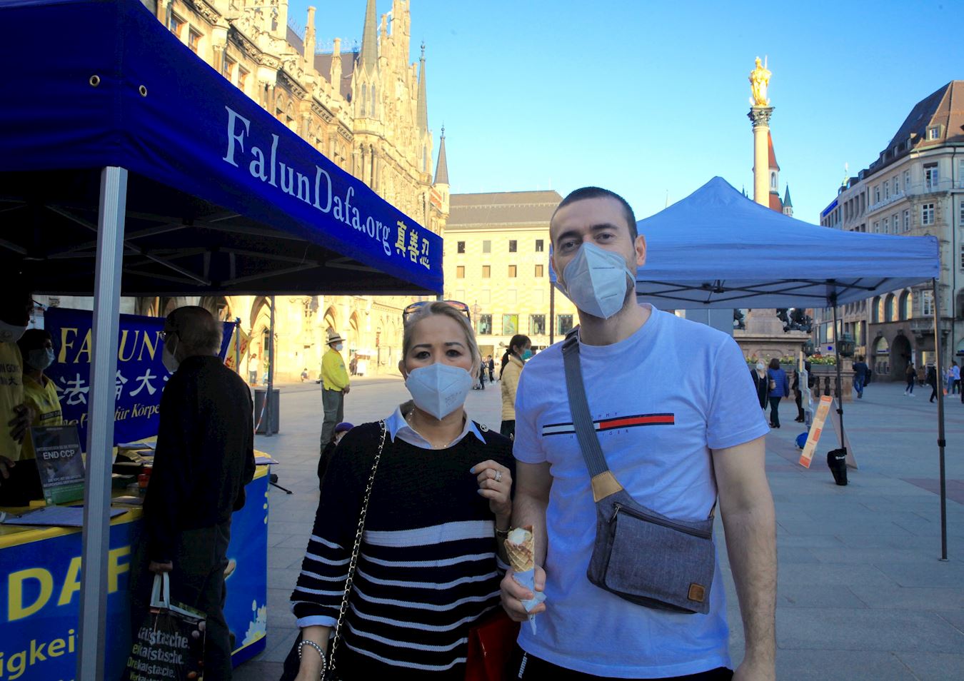 ![]() 图4:二零二一年三月三十日在玛琳广场(Marienplatz),伊马姆维奇(Sanad Imamovic)和女友阿科斯巴(Maria Theresa Acosta)签名制止中共活摘法轮功学员器官。 |