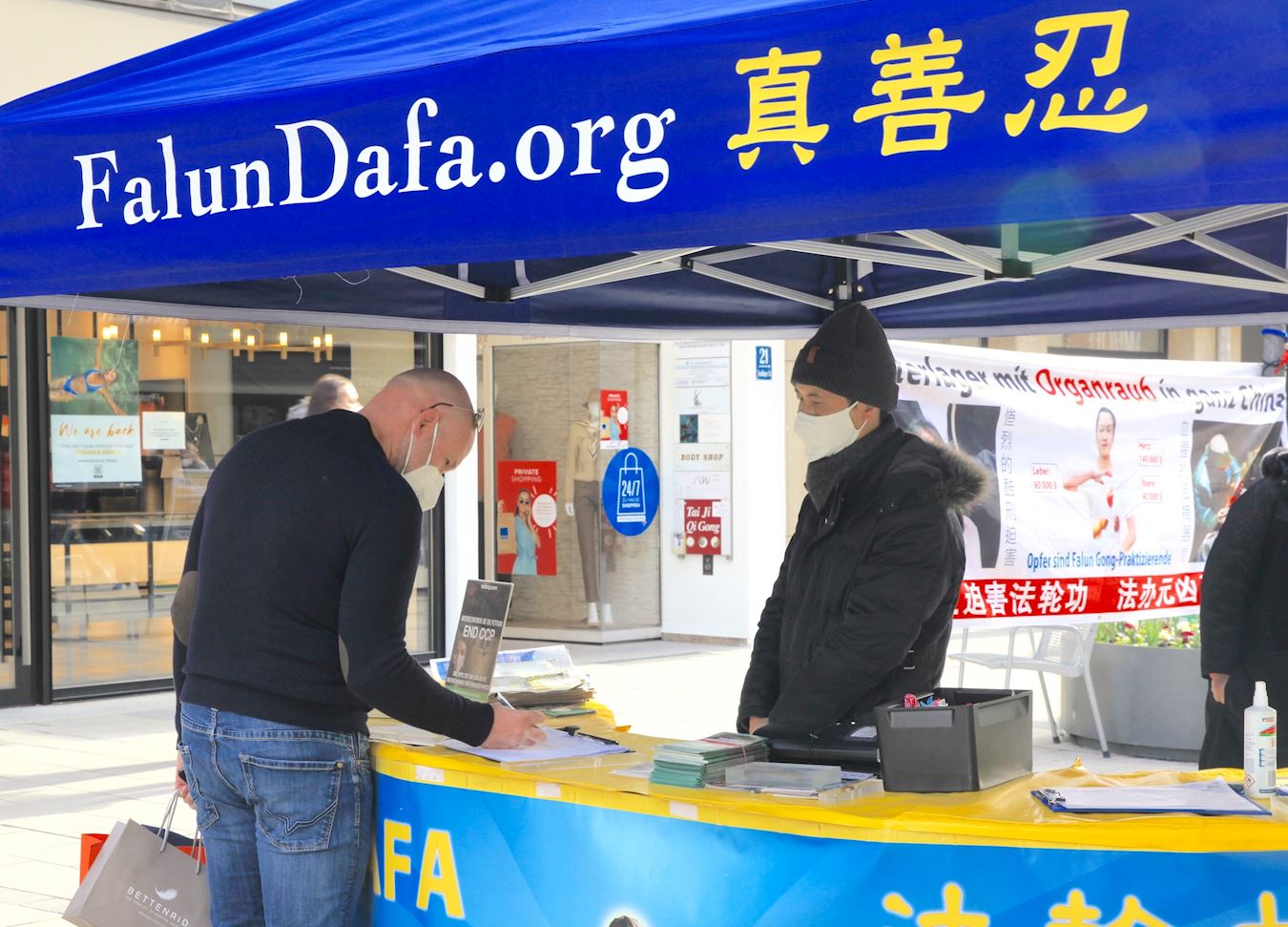 '>图3:二零二一年三月二十日,德国民众在慕尼黑森德林格街(Sendlinger Straße)信息台签名,制止中共活摘法轮功学员器官。 |