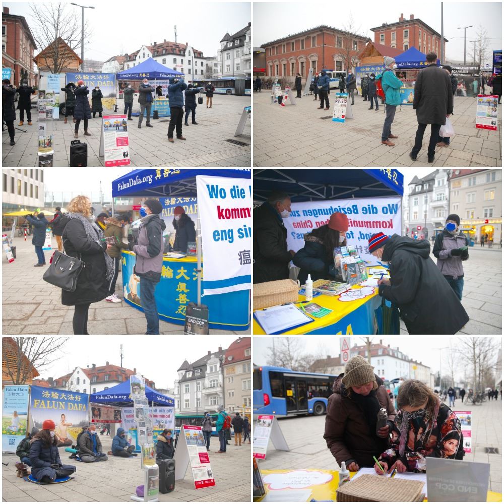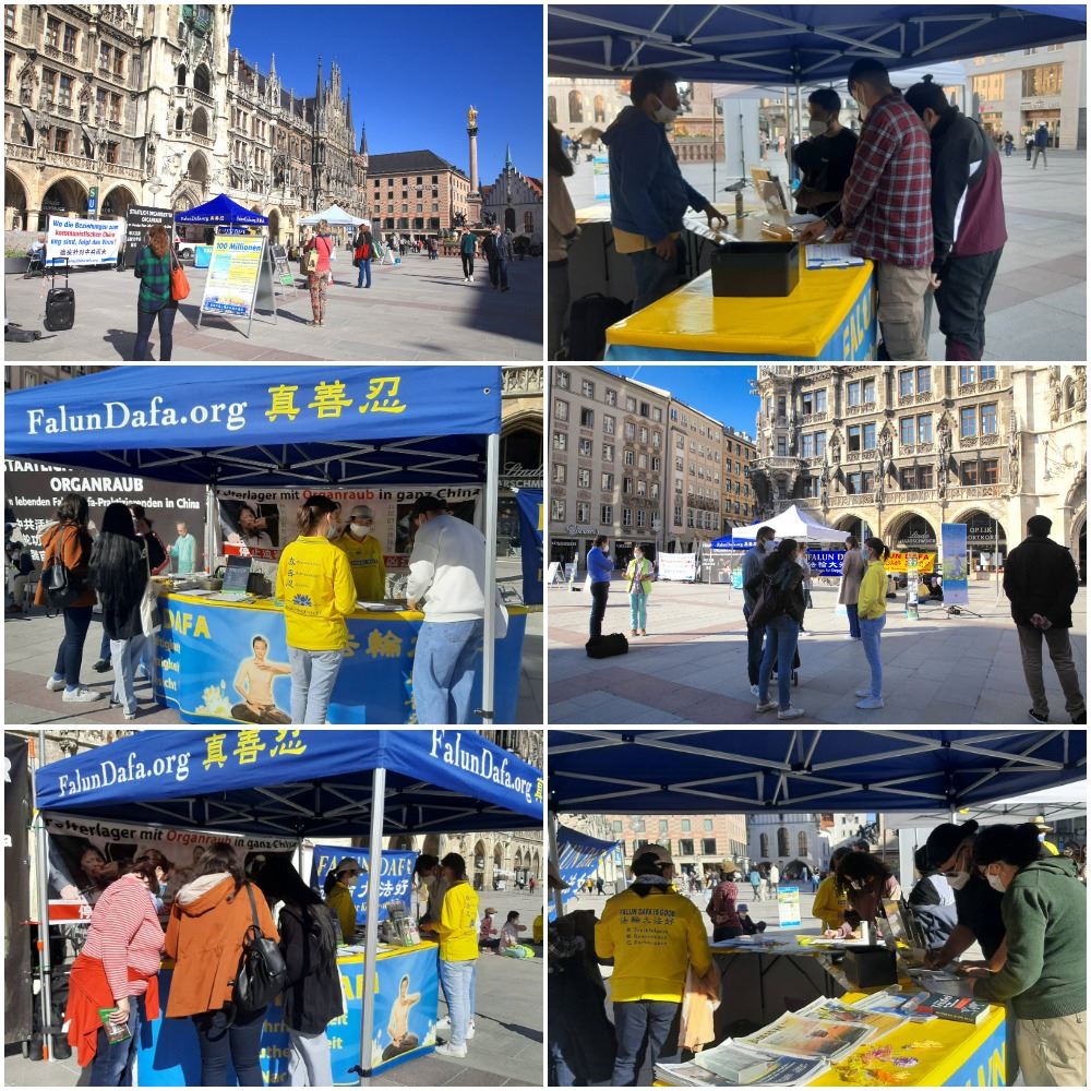 二零二一年三月三十日,法轮功学员在德国慕尼黑玛琳广场(Marienplatz)举办信息日活动。法轮功学员在传播法轮功的真相的同时,也告诉德国民众中共的危害,提醒人们远离中共,不能只顾眼前的经济利益,出卖正义良知。