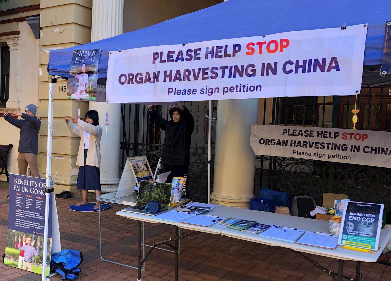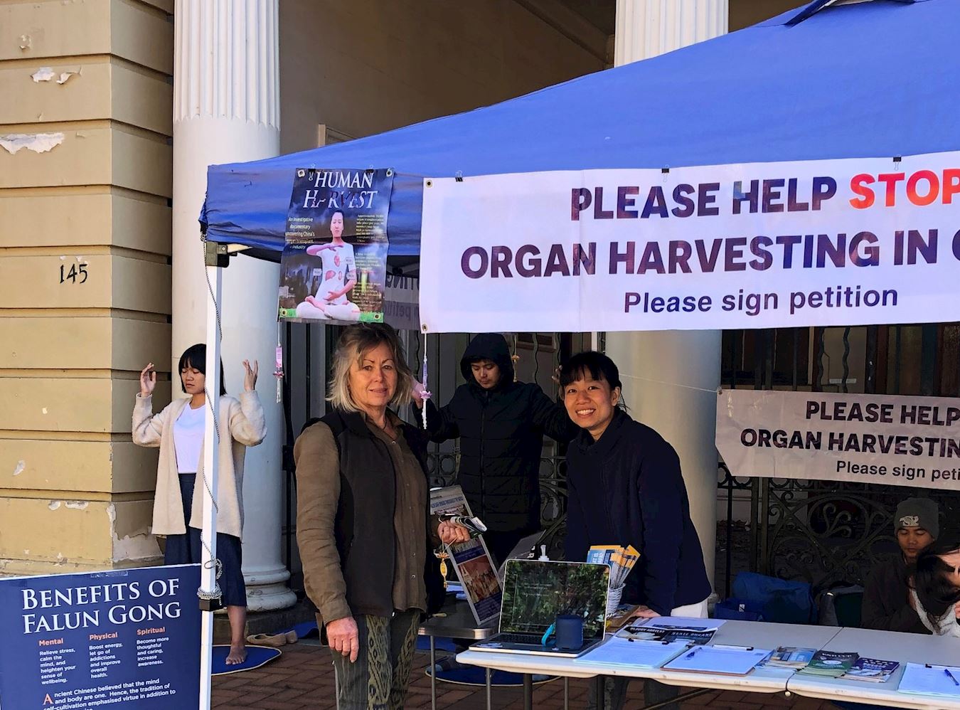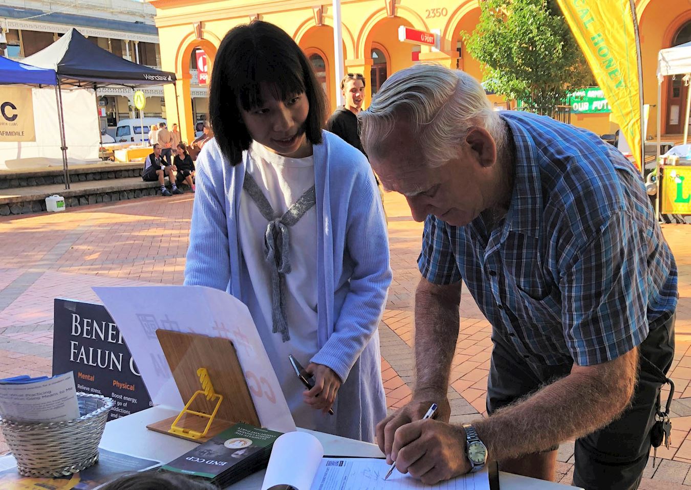 二零二一年三月二十八日,在三月的最后一个周日里,澳洲阿米代尔(Armidale)小镇法轮功学员们,和以往一样,也在购物市场设展位,向当地民众展示法轮大法的功法,同时也让当地人了解中共对法轮功学员迫害的罪行。许多民众对中共迫害信仰团体感到震惊和愤怒,并在反迫害请愿书上签名,希望尽快结束中共对法轮功长期迫害和活摘器官的罪行。