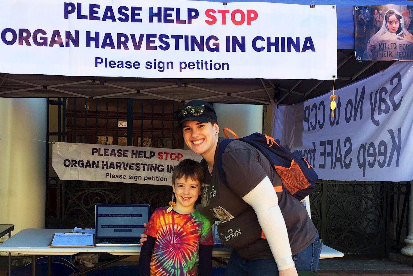 萨曼莎的妹妹也在附近设立展位,当她听说这惊人消息后也前来了解更多真相,并在请愿书上签名支持法轮功反迫害。