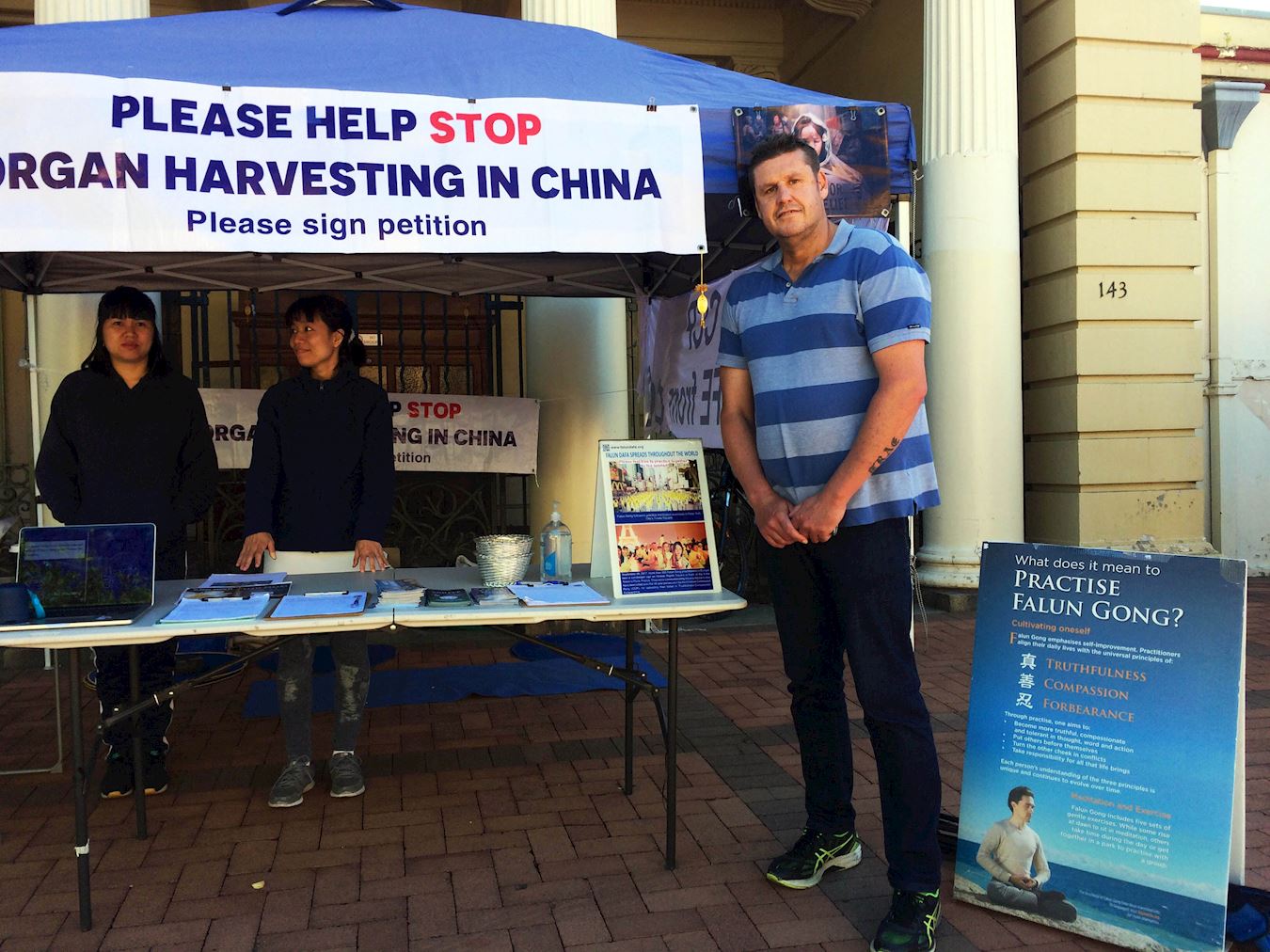 三月二十八日,马修·博伊尔(Matthew Boyle)在法轮功展位与学员交谈,当他了解到中共活摘法轮功学员器官罪行时,表示非常震惊。他说:“这真是太令人震惊了!我很难理解这样的罪行怎么会真的发生在这个世界上,我的意思是人权应该是属于每个人的,不只是在澳洲,也应该是在中国。我们希望法轮功学员能得到你们需要的支持,来解决这个问题,希望不久我们能看到事情往好的方向改变。”
