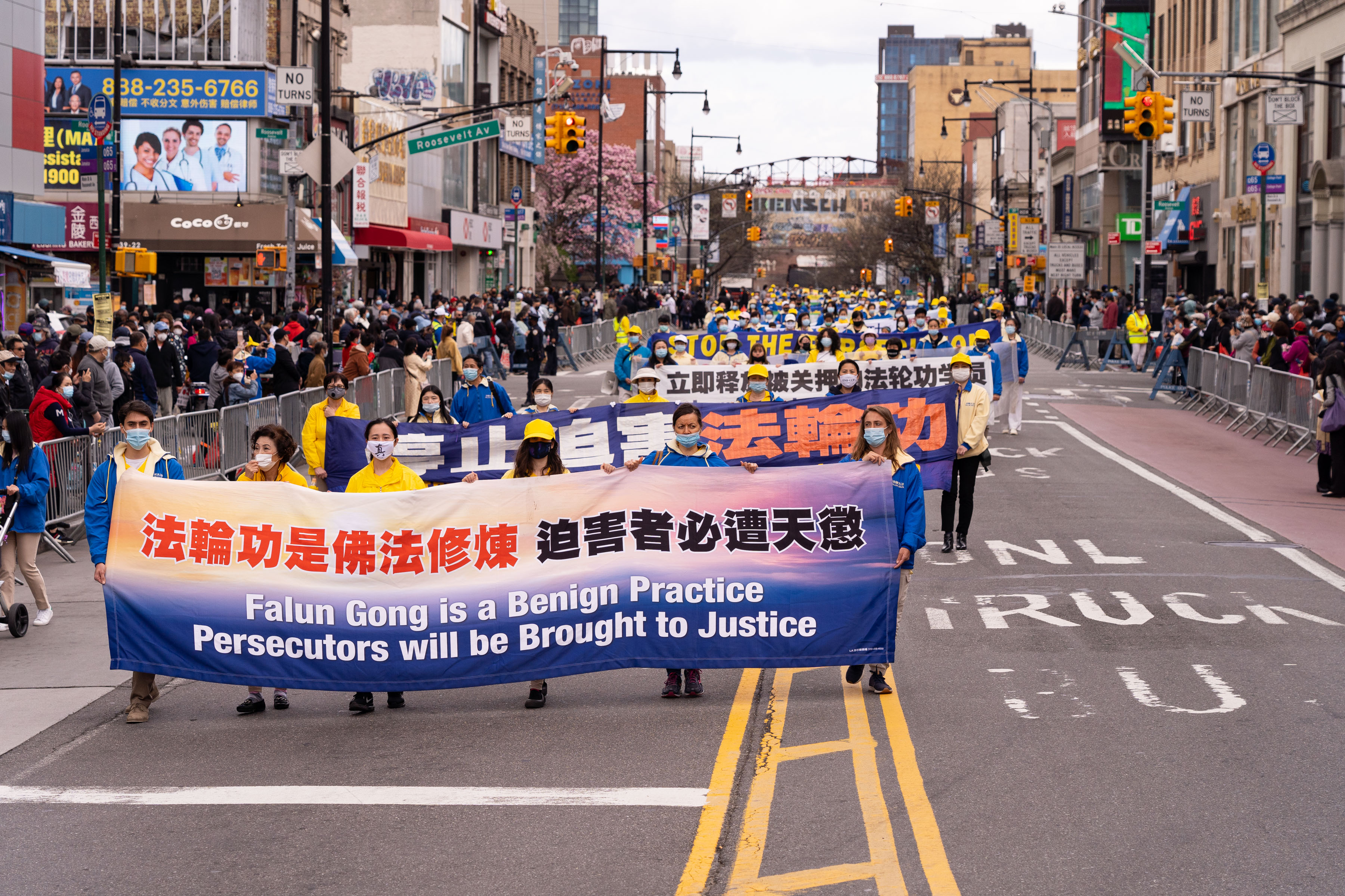 ![]() 图1: 2021年4月18日,上千名大纽约地区中西族裔法轮功学员在华人社区法拉盛举行游行和集会,纪念四·二五,抗议中共迫害。 |