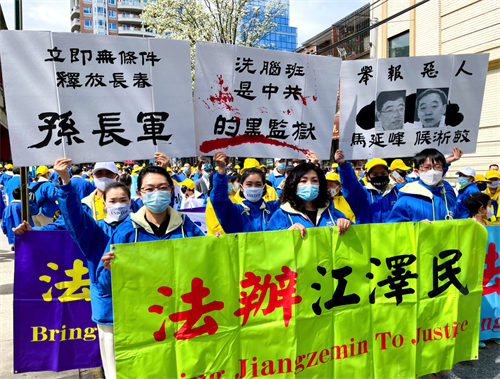 四月十八日,在纽约法拉盛千人纪念四·二五的游行和集会上,原长春法轮功学员陈敬宇等呼吁国际社会营救孙长军。