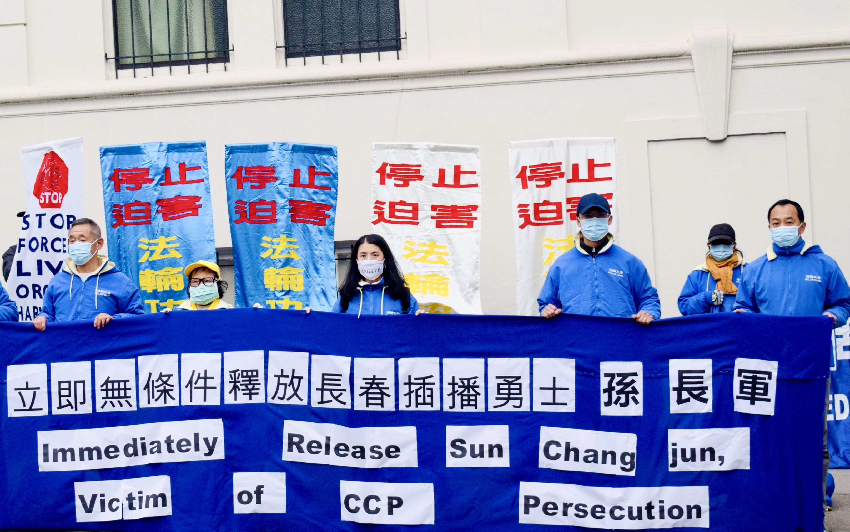 ![]() 图4:2021年4月23日,旧金山法轮功学员在中使馆前纪念四·二五和平上访22周年,并呼吁国际社会营救孙长军。 |