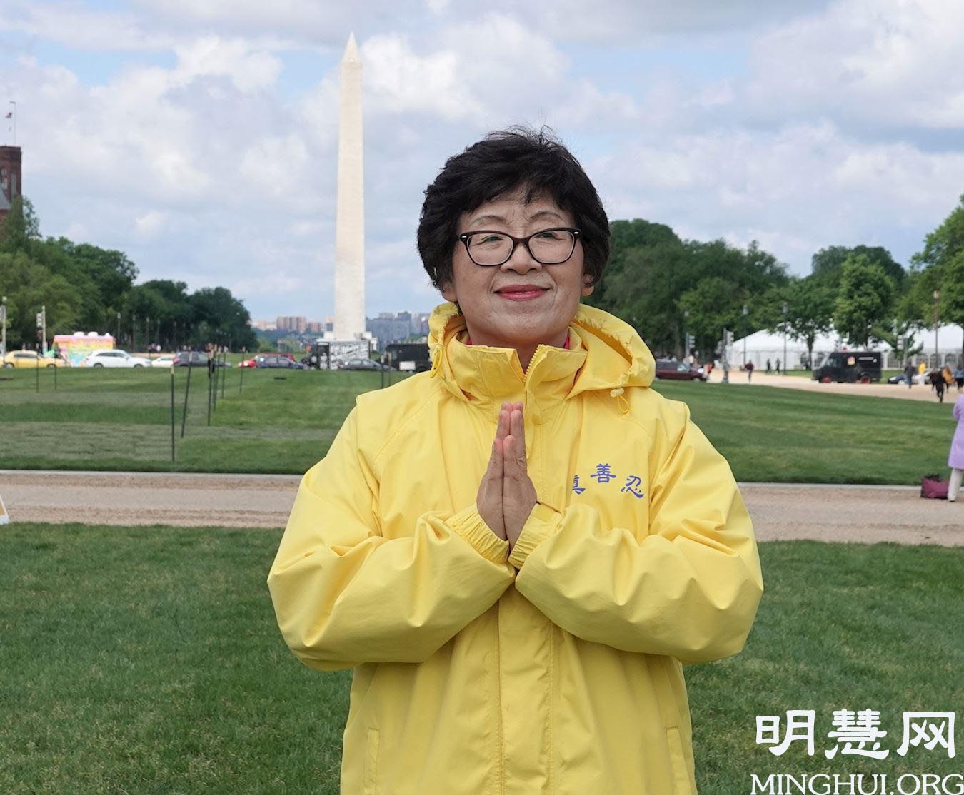 ![]() 图5:华府法轮功学员姚香兰感恩李洪志师父 |