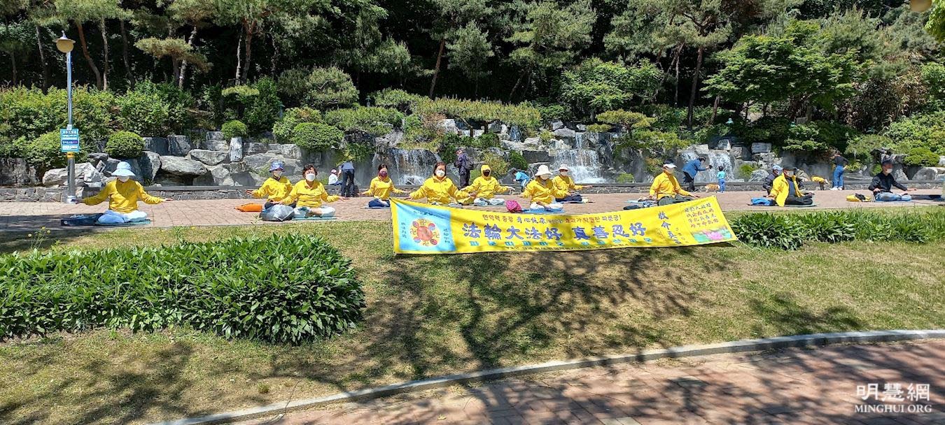 ![]() 图1:韩国南部地区大法弟子集体炼功,恭祝师尊华诞,庆祝世界法轮大法日! |