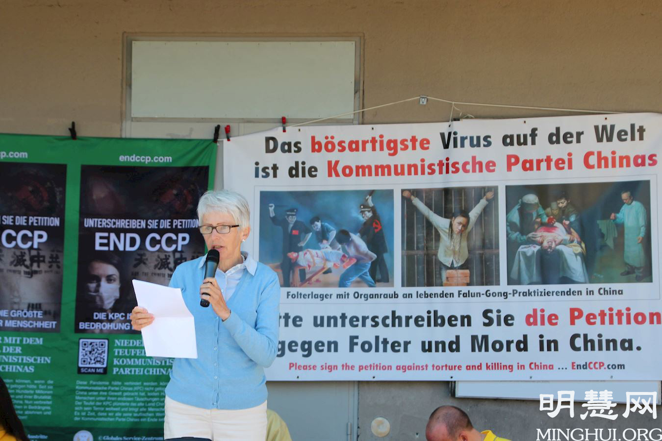 在苏黎世,法轮功学员通过扬声器多次宣读信件,让很多路人也知晓了中共七十多年来在中国的种种邪恶。还有路人告诉学员,在领馆附近办这样的活动真是太合适了。