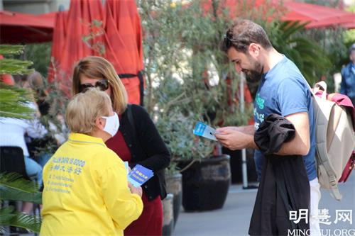 临走前,她还拿了多份真相资料打算去分发,她谈道:“我从(法轮功学员的)活动中看到了正义。我也想让其他人知道这些今天打动我的讯息。我知道有些人认为自己很公正,但是因为他们得到的信息太少了,所以他们的想法并不一定始终都是公正的。我希望能给更多人相关的讯息,让他们能够有兴趣去了解更多。我或许说不清楚,有传单的话他们可以自己去读。我打算去不同的地方发送这些信息。”“我觉得今天这样的活动太好了,如果有越来越多的人了解这样的信息会有不同的反响。”