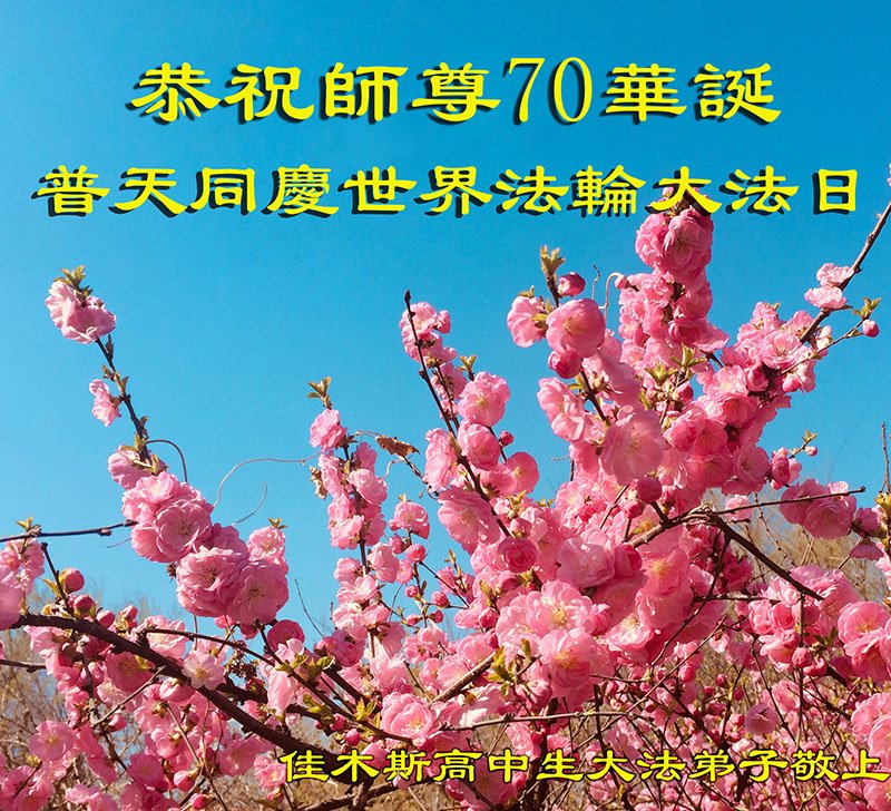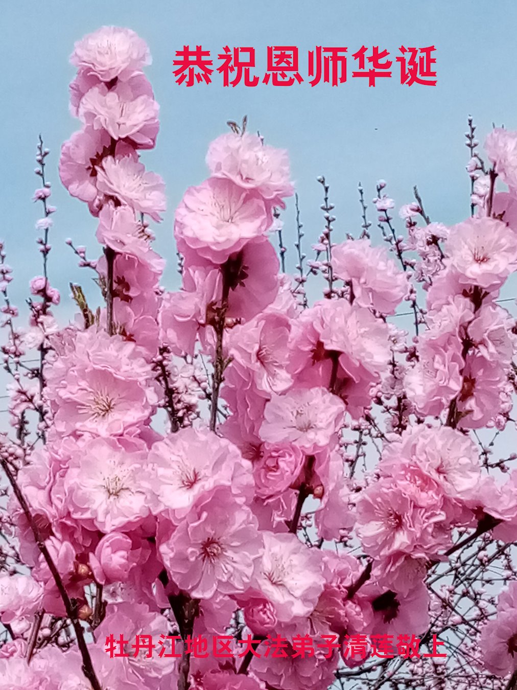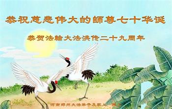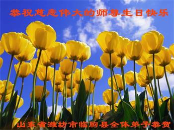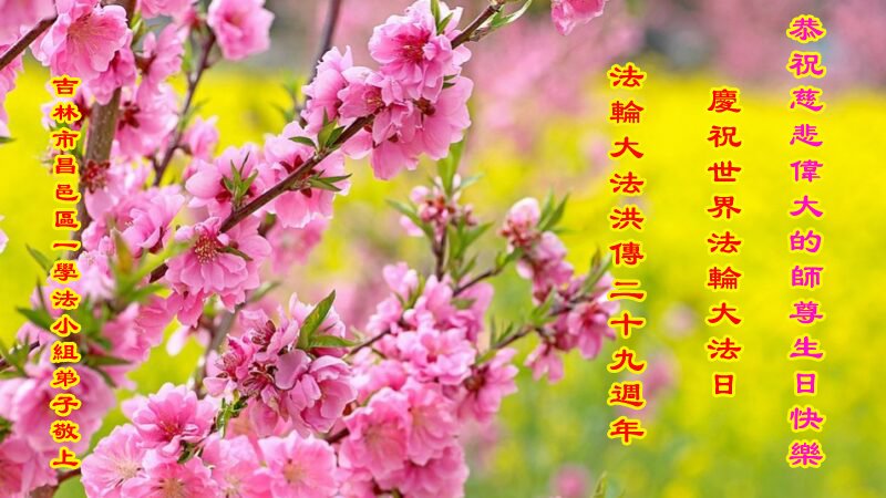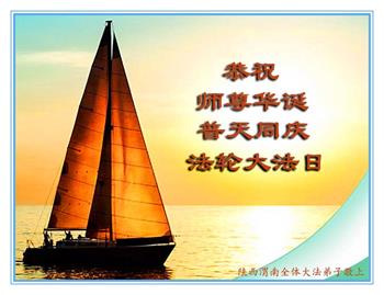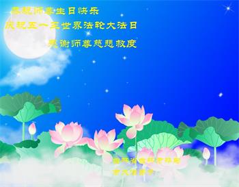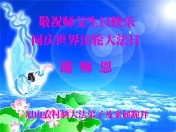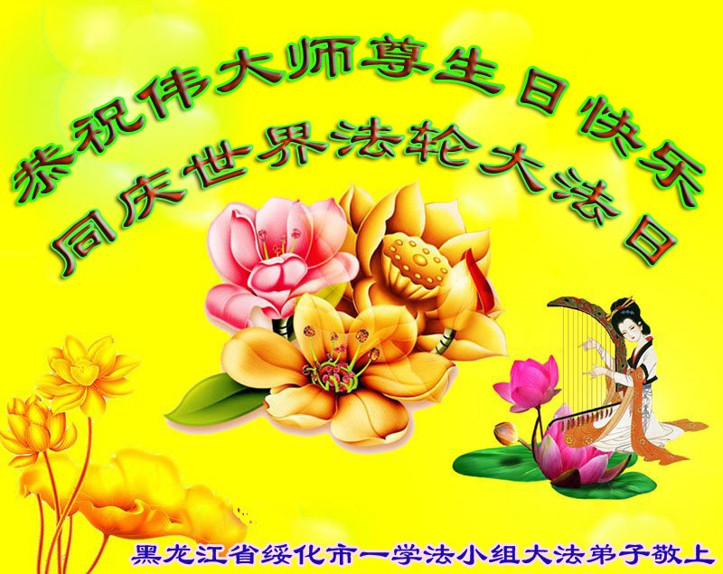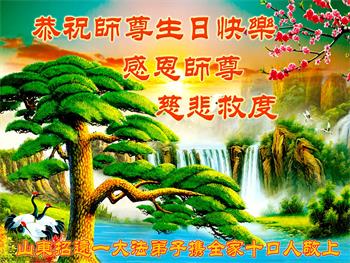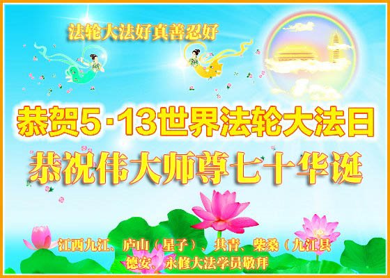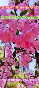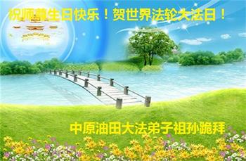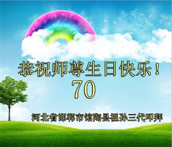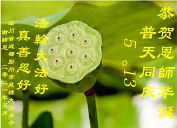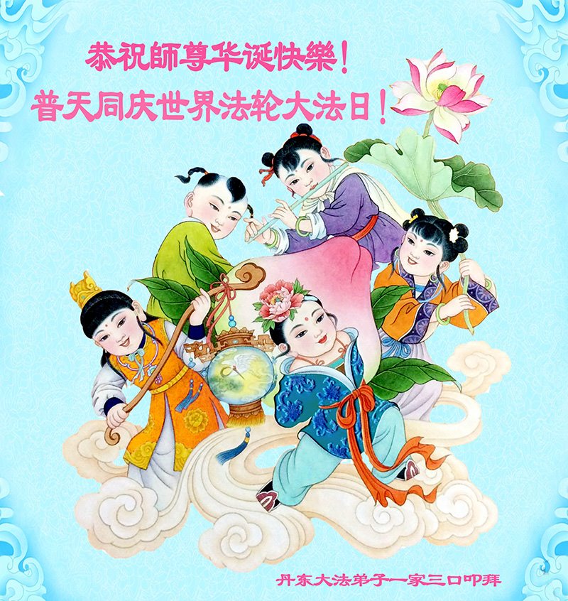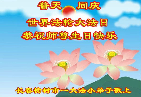 师尊好!师尊辛苦了!今年是伟大慈悲的师尊七十岁华诞,也是法轮大法日。在这普天同庆同颂的伟大光辉日子里,我们怀着无比感恩的心情,热泪泉涌,发自肺腑的一遍又一遍的颂唱着“法轮大法好”、“师恩颂”美好的歌曲,讴歌师尊威德无量、法力无边、叩谢师尊的慈悲苦度!