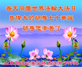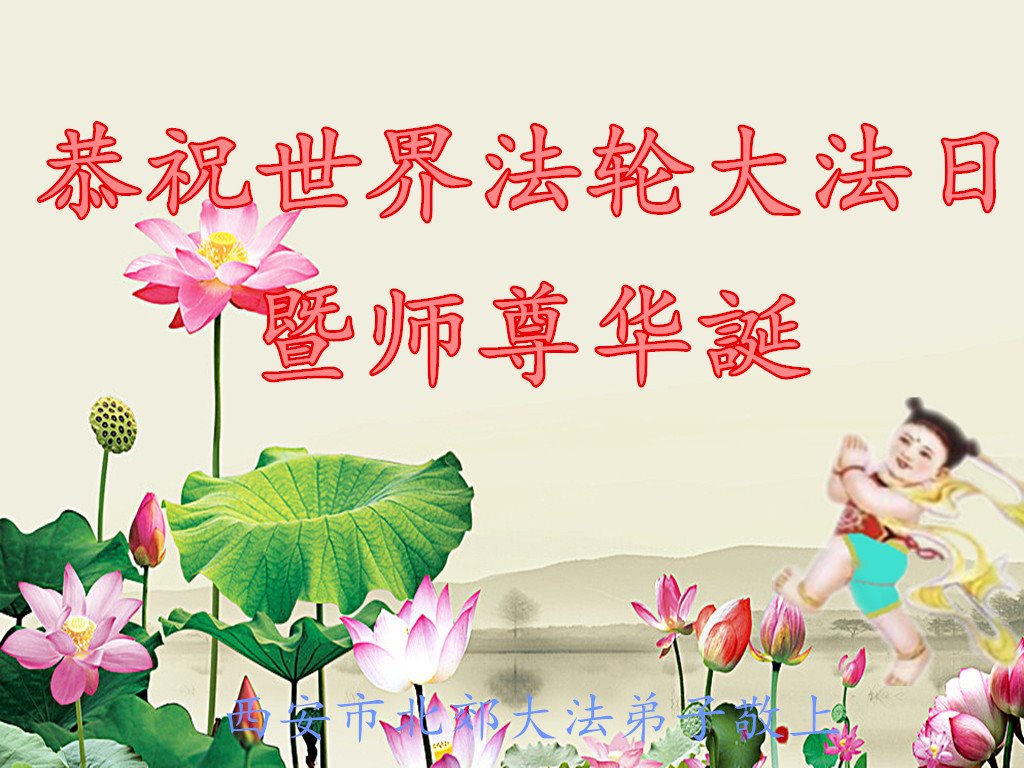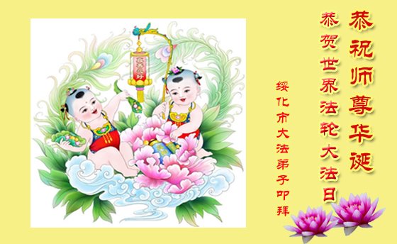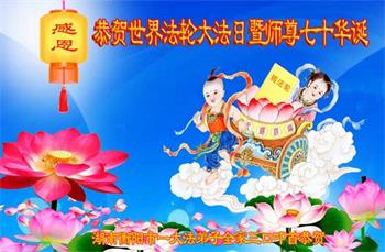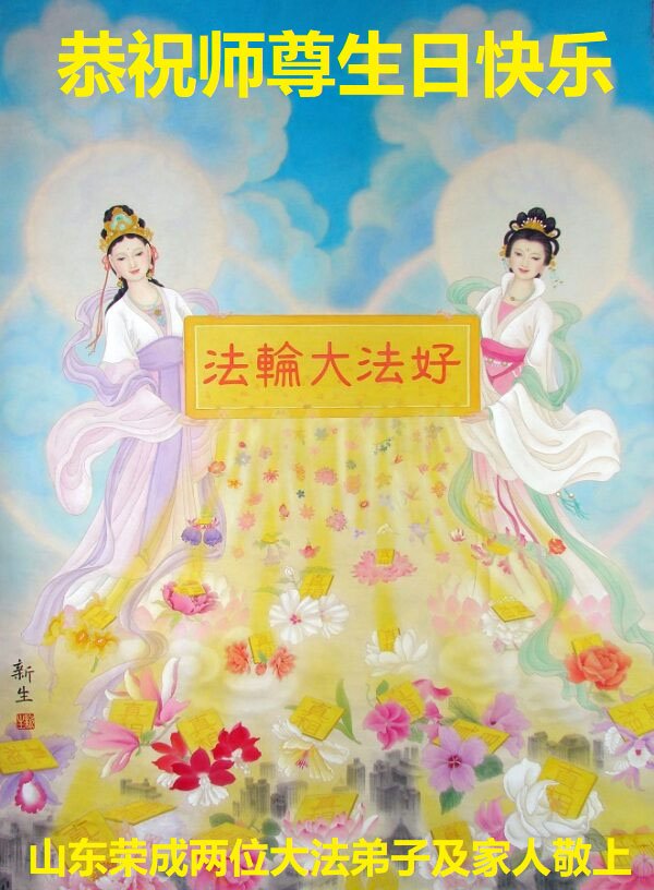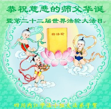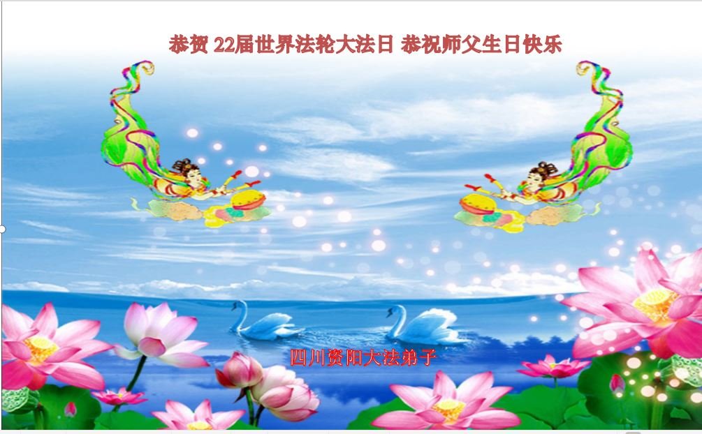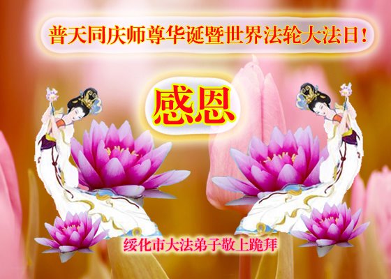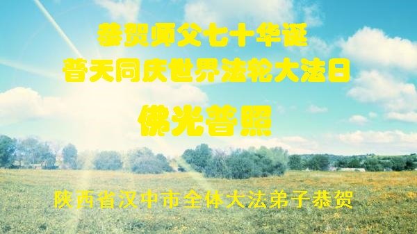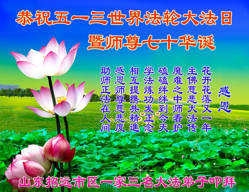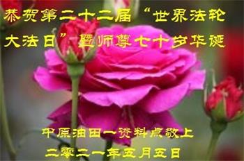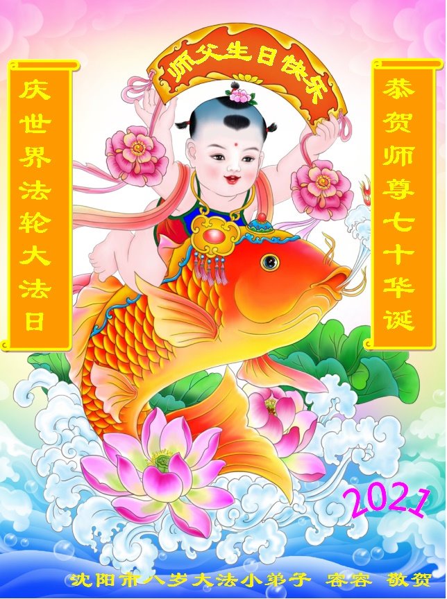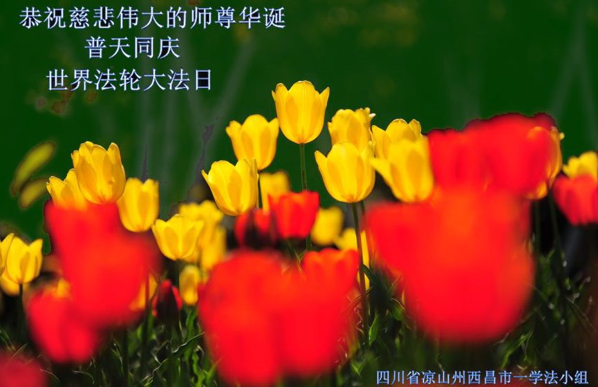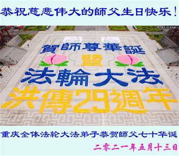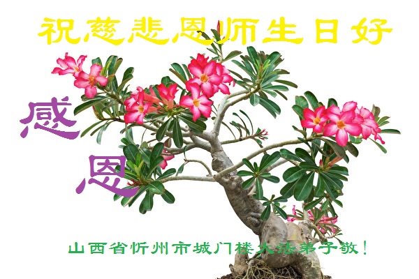 师尊好!师尊辛苦了!今年是伟大慈悲的师尊七十岁华诞,也是法轮大法日。在这普天同庆同颂的伟大光辉日子里,我们怀着无比感恩的心情,热泪泉涌,发自肺腑的一遍又一遍的颂唱着“法轮大法好”、“师恩颂”美好的歌曲,讴歌师尊威德无量、法力无边、叩谢师尊的慈悲苦度!