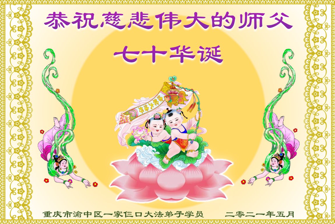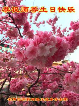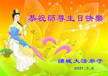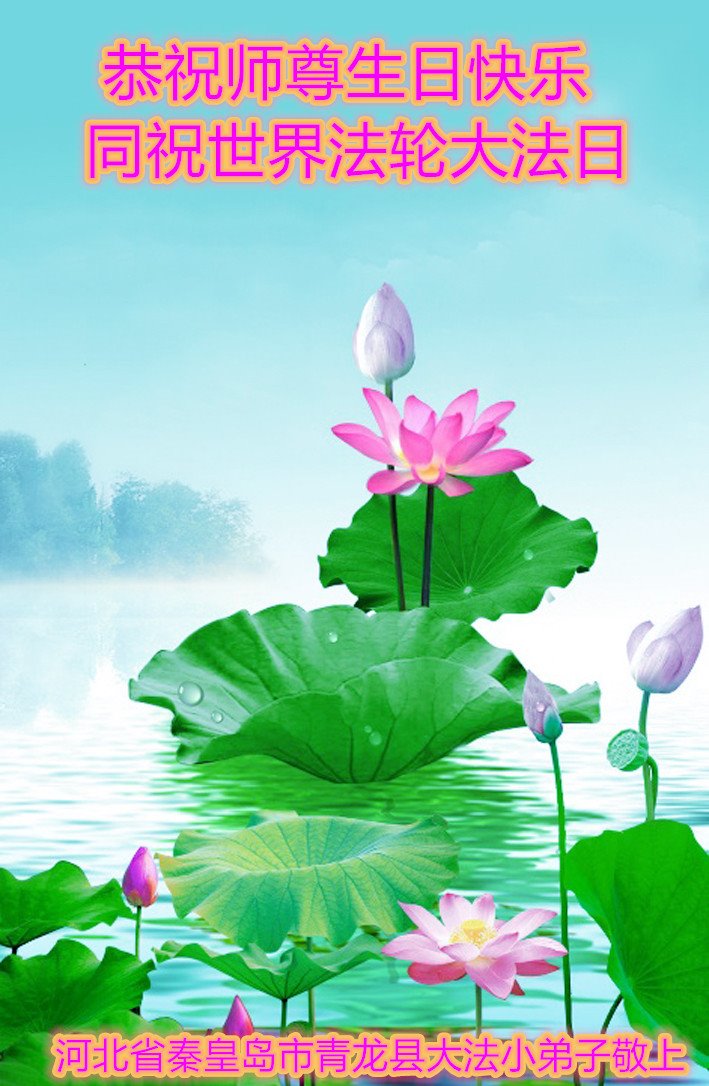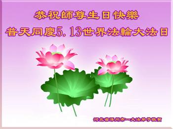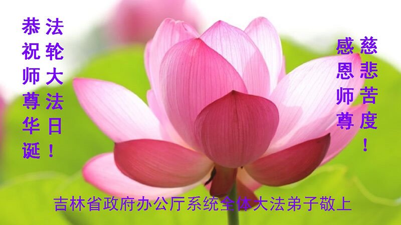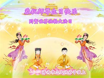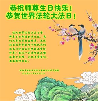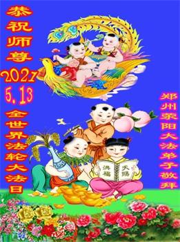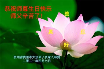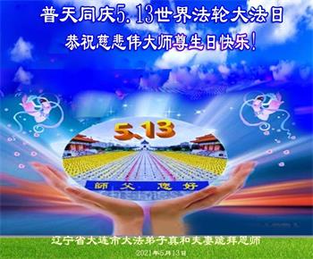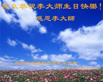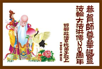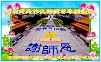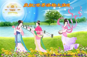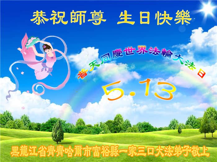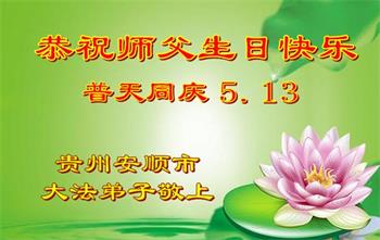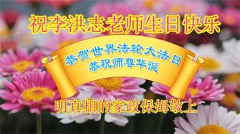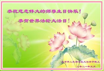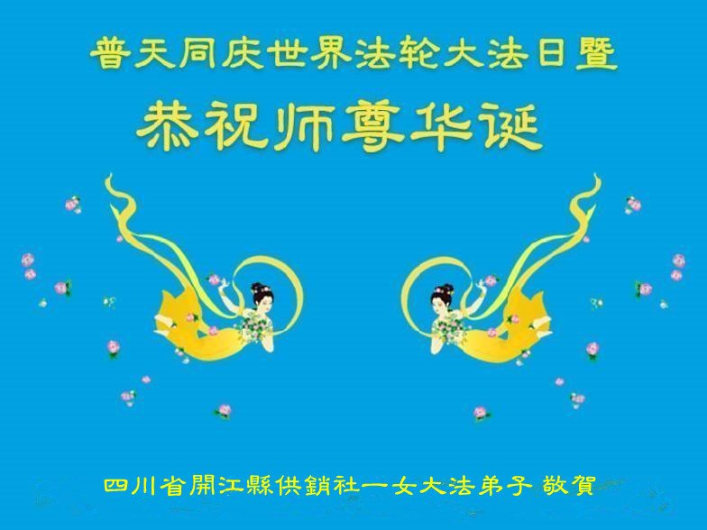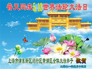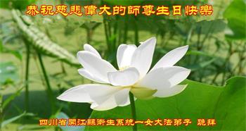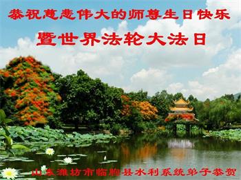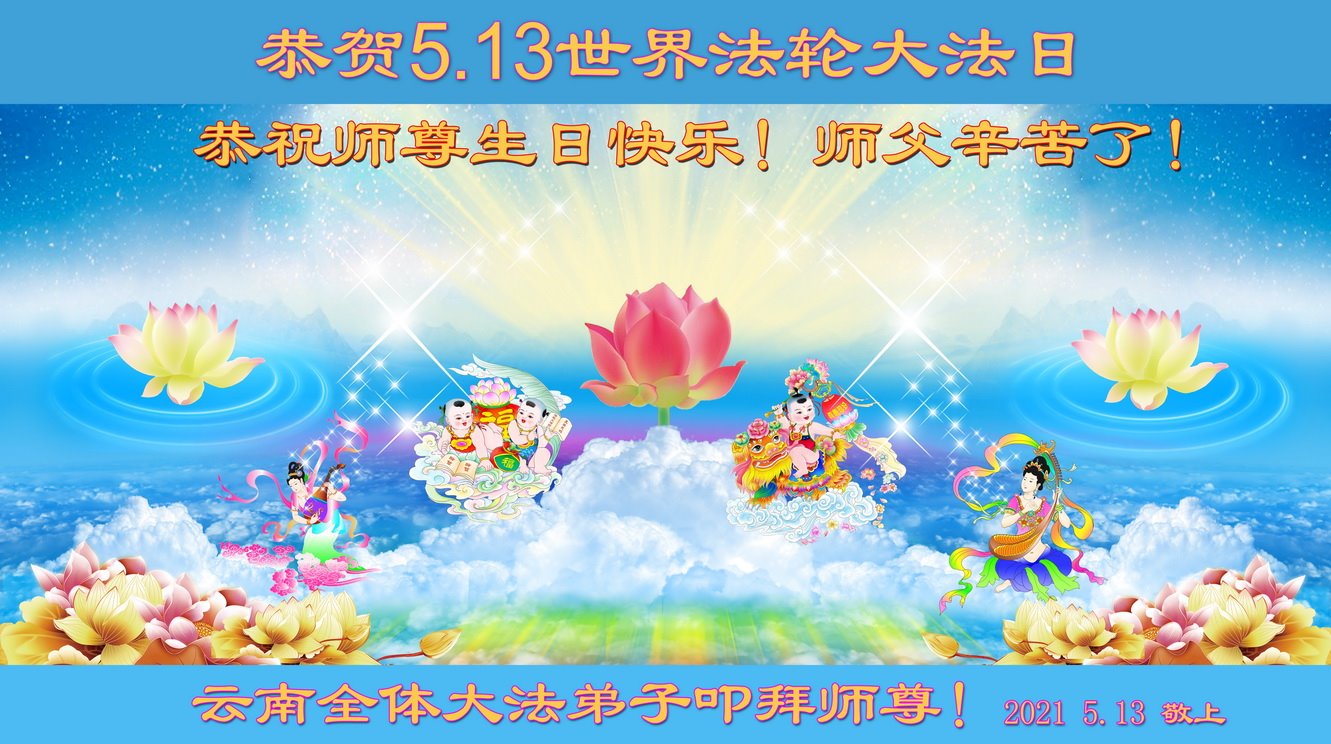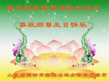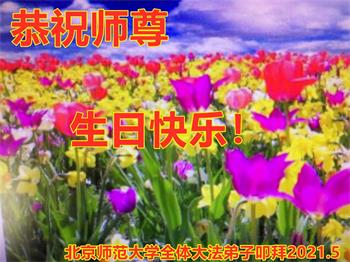 福建省福州市一大法弟子在贺词中说:“弟子双手合十,发自心底的恭祝慈悲伟大的师父华诞!每当5·13这辉煌的日子到来之际,弟子内心都充满对师父的无比感恩和思念。是师父把我脱胎换骨,重塑成一个全新的真我。”