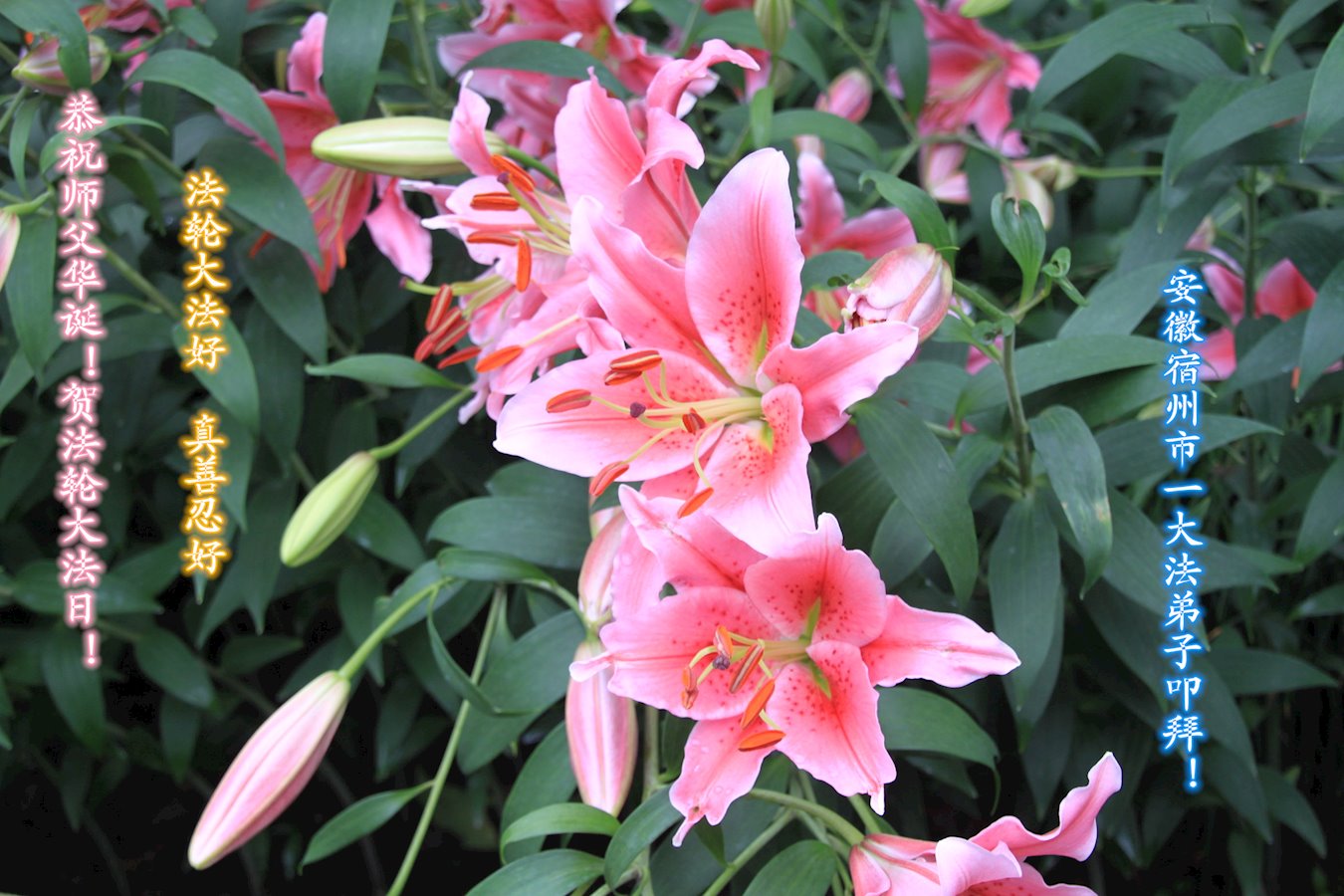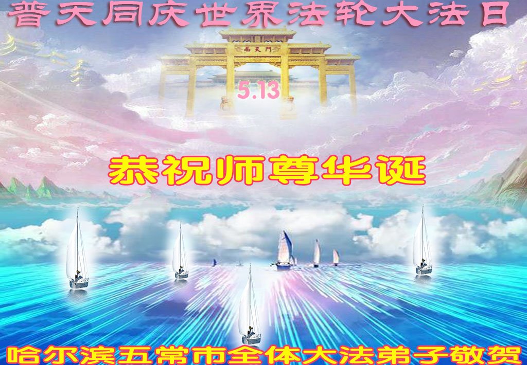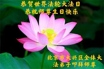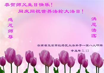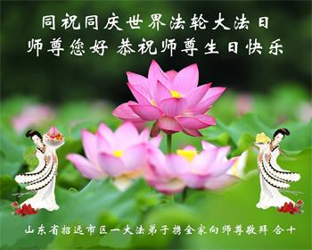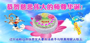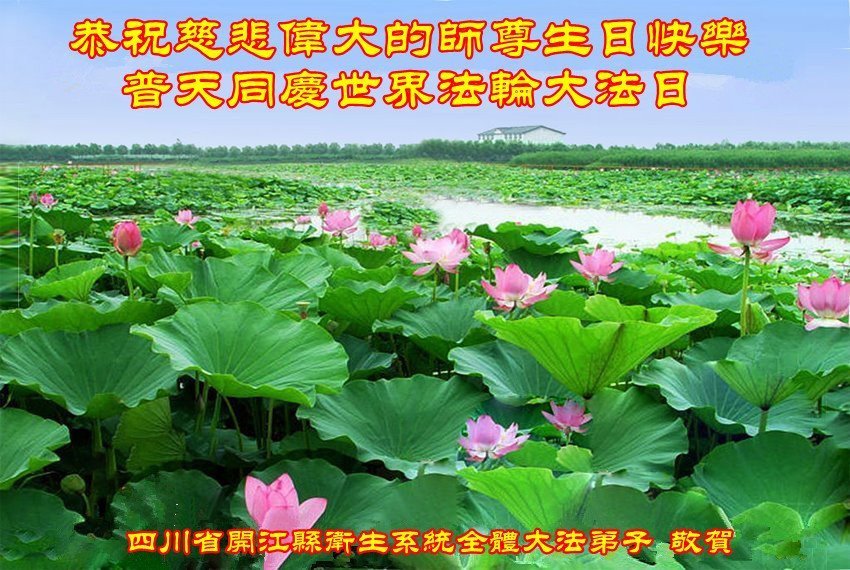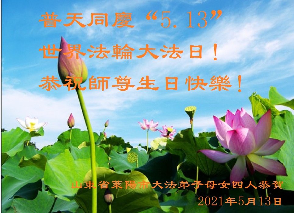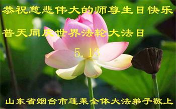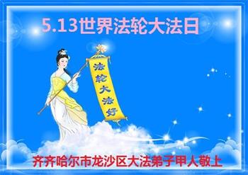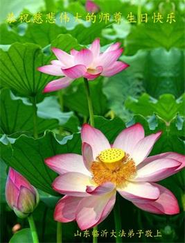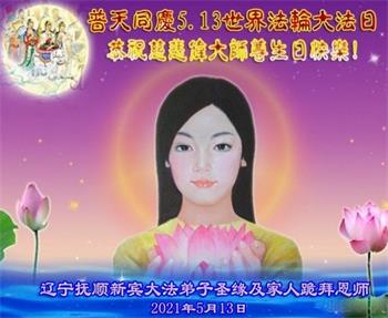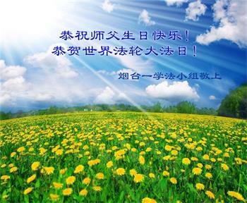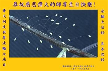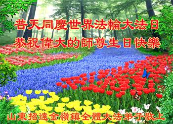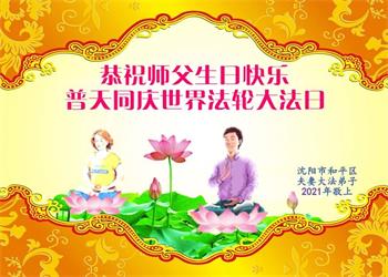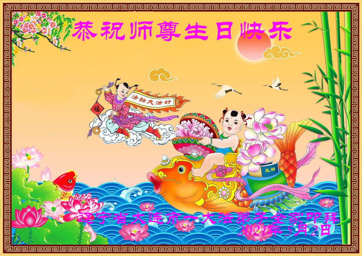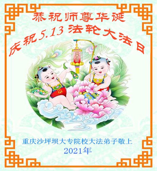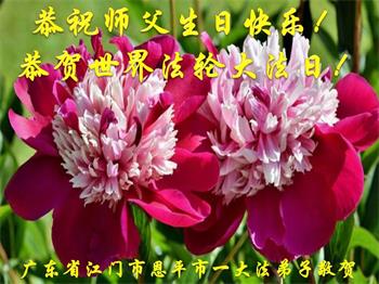 福建省福州市一大法弟子在贺词中说:“弟子双手合十,发自心底的恭祝慈悲伟大的师父华诞!每当5·13这辉煌的日子到来之际,弟子内心都充满对师父的无比感恩和思念。是师父把我脱胎换骨,重塑成一个全新的真我。”